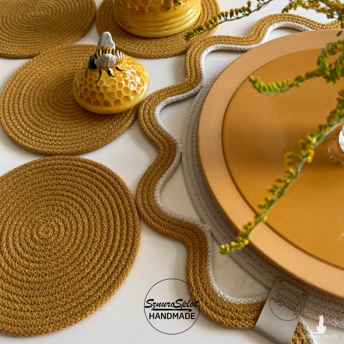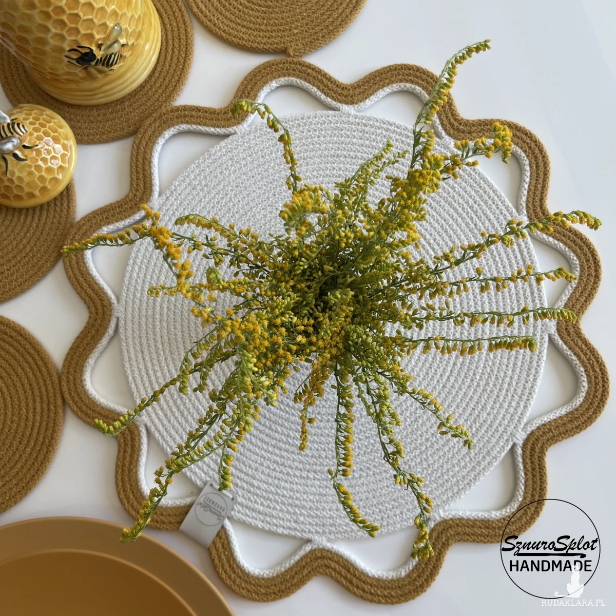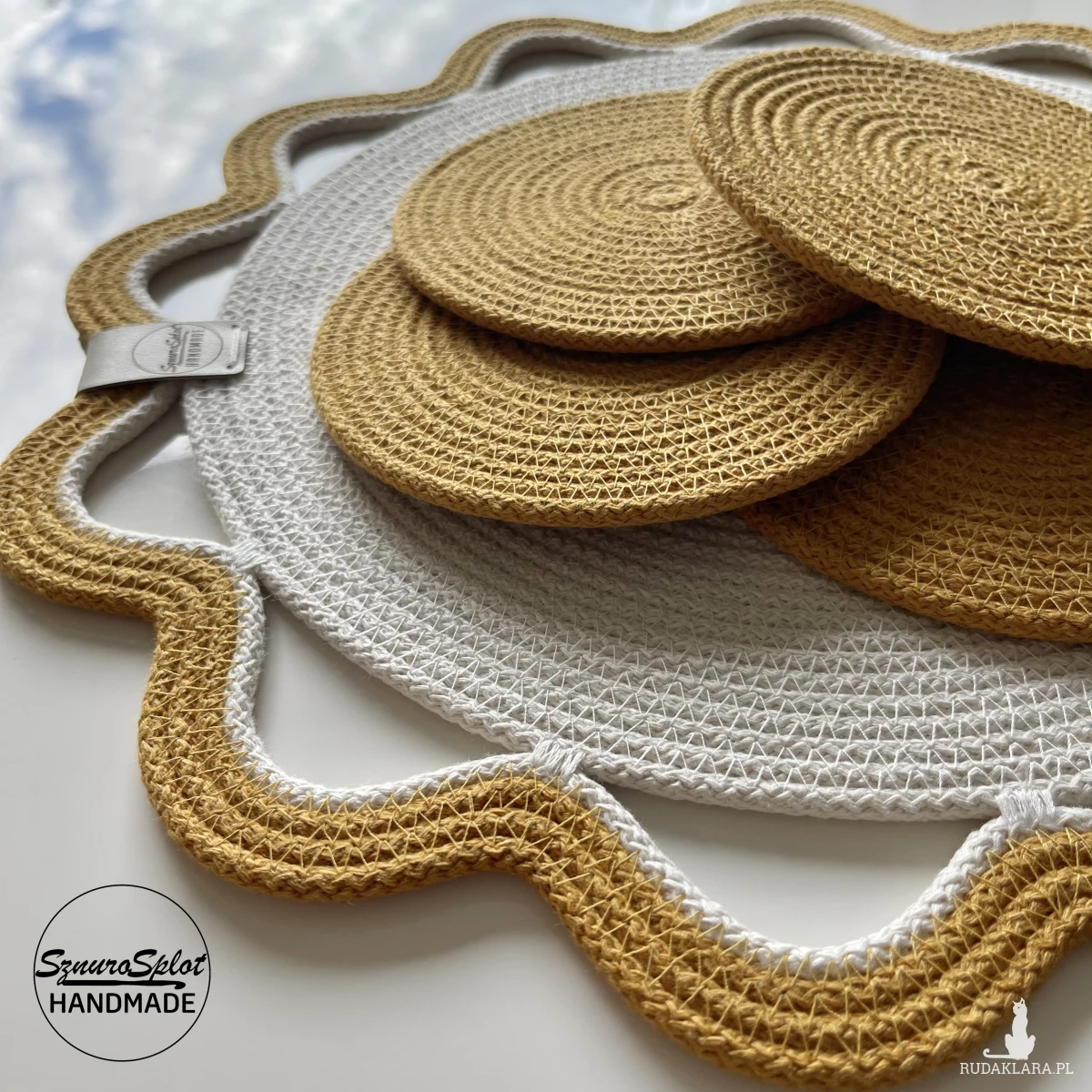 Wzór podkładek dwukolorowych uszytych ze sznurka w kolorach 02 i 18