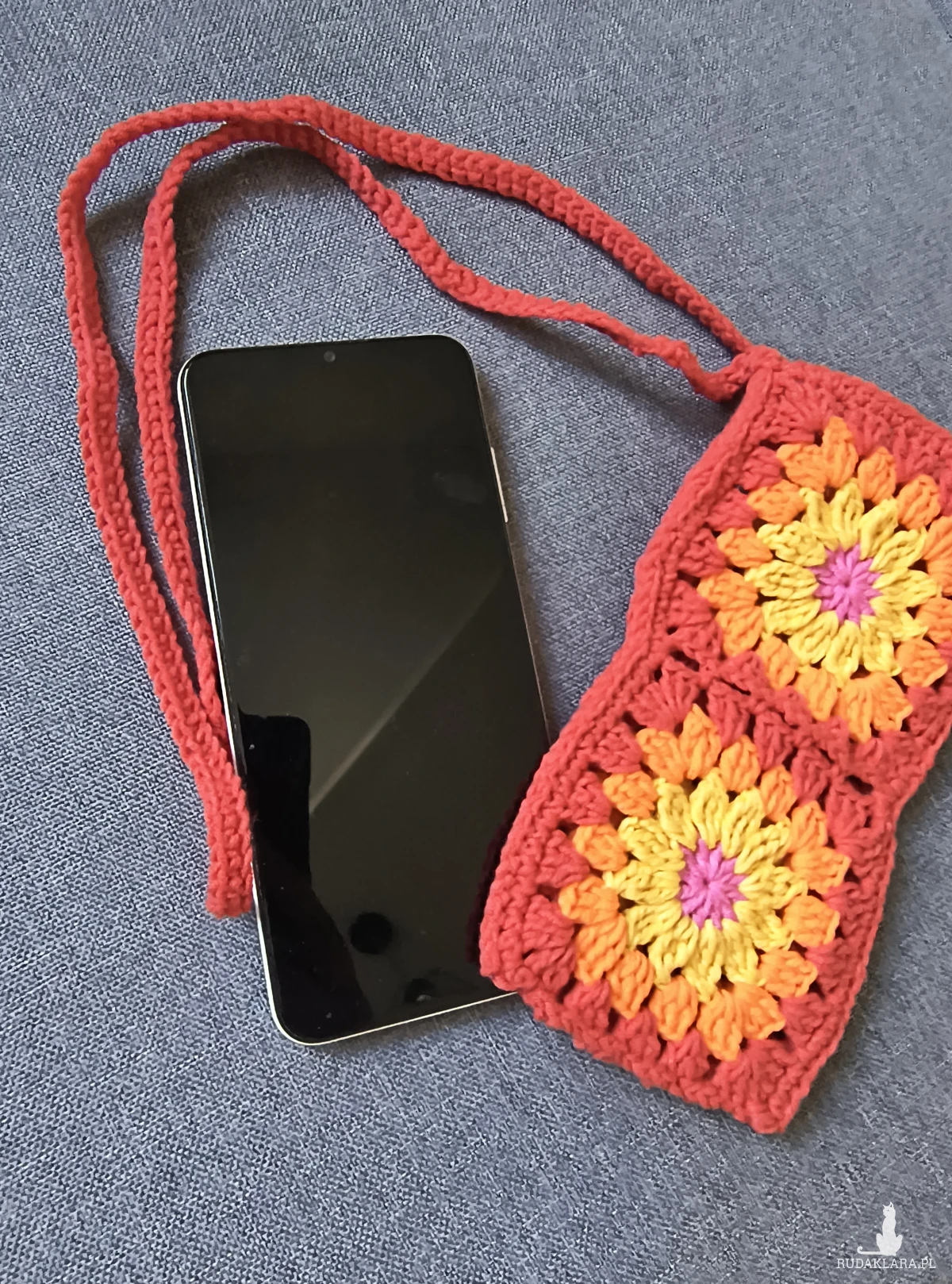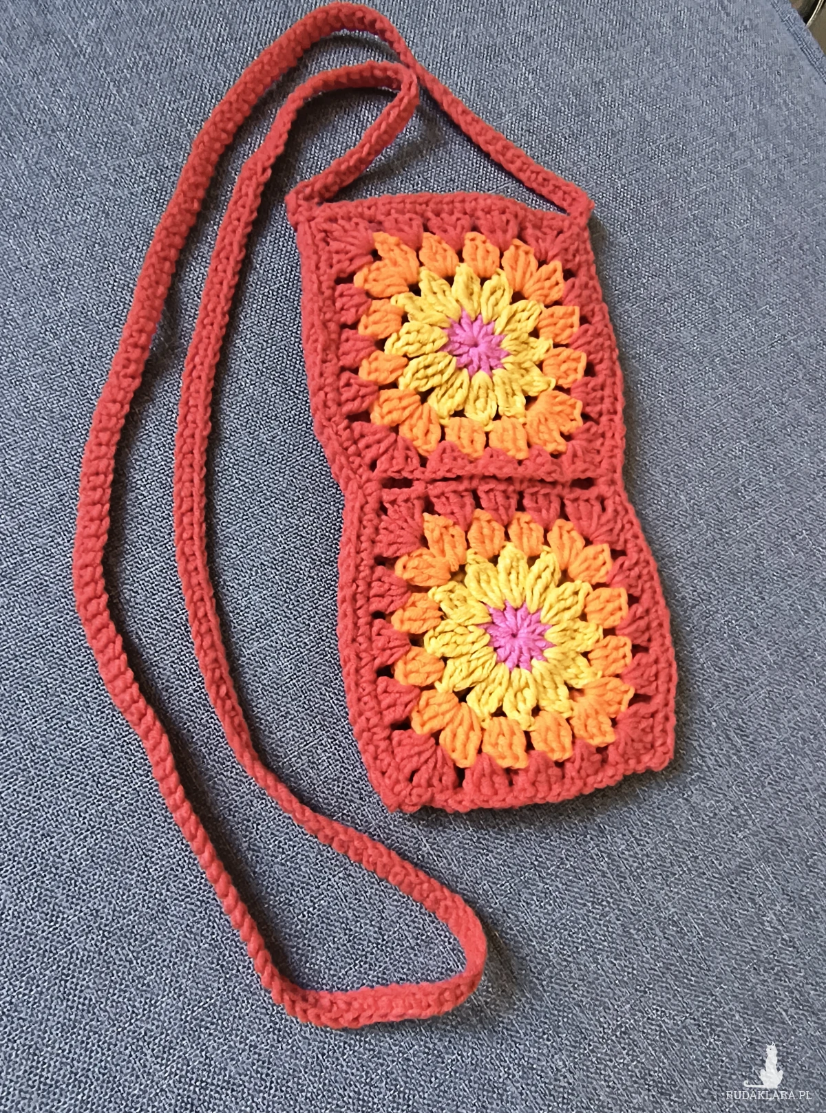 Kolorowe etui/ torebka na telefon. Kwadraty babuni, wesoły dodatek do każdej stylizacji.