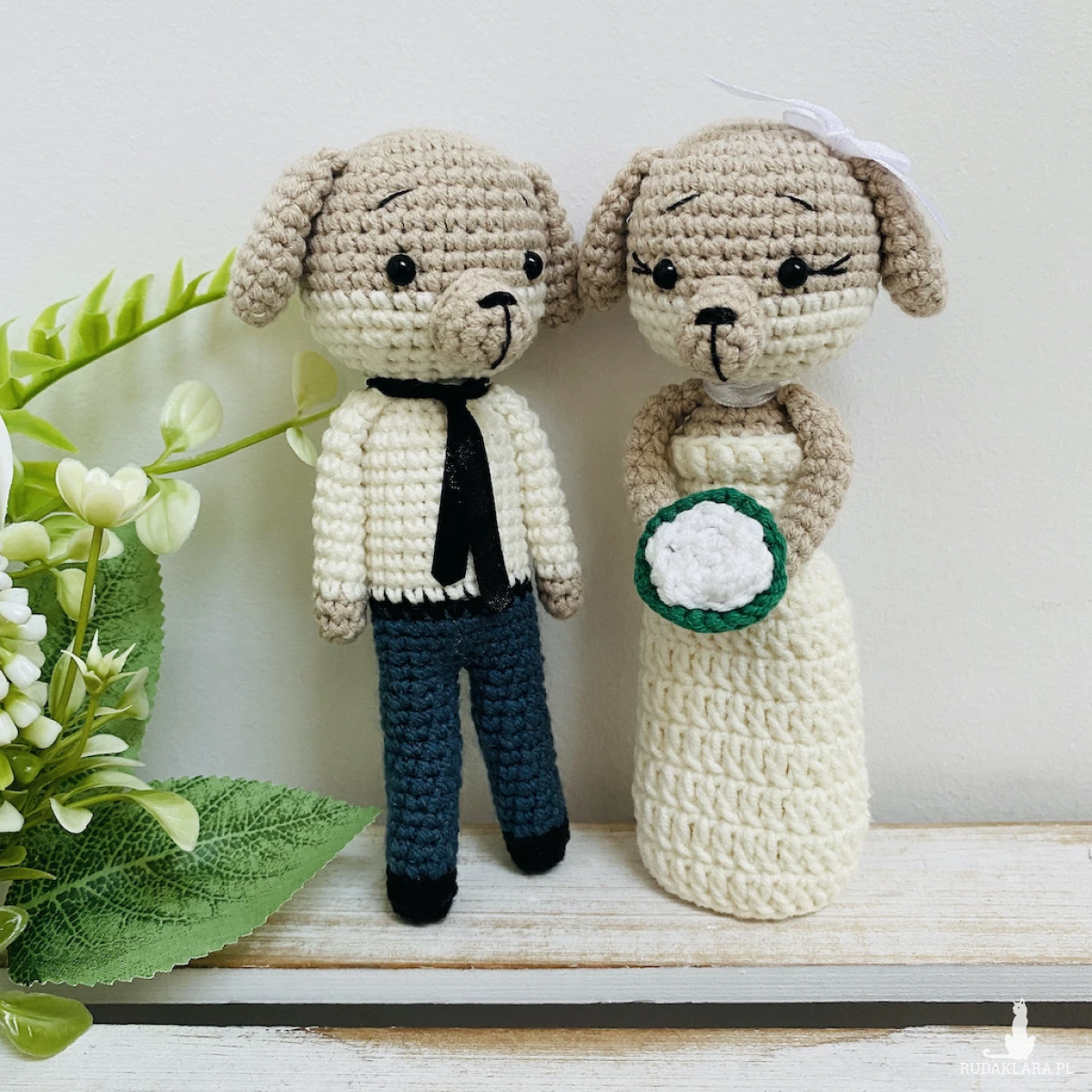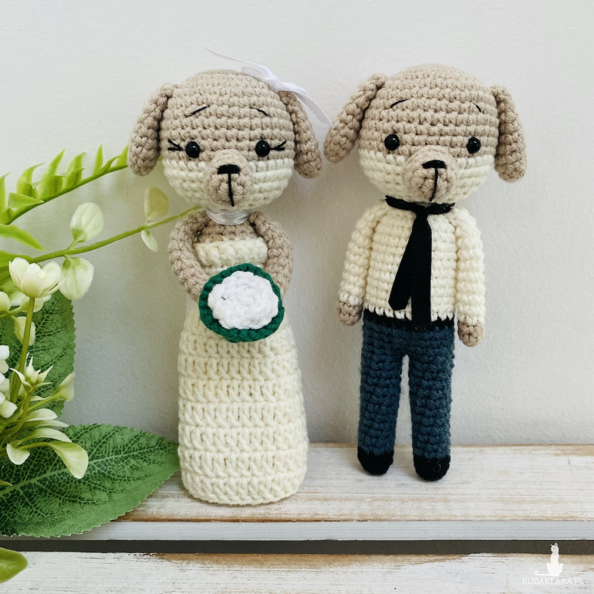 Młoda Para – pieski maskotki ręcznie robione na szydełku – idealny prezent ślubny