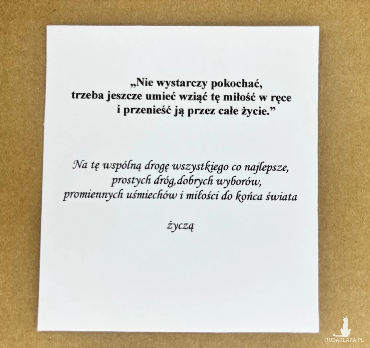 Podczas zamawiania w uwagach proszę podać imiona Pary Młodej, datę oraz dane składających życzenia.