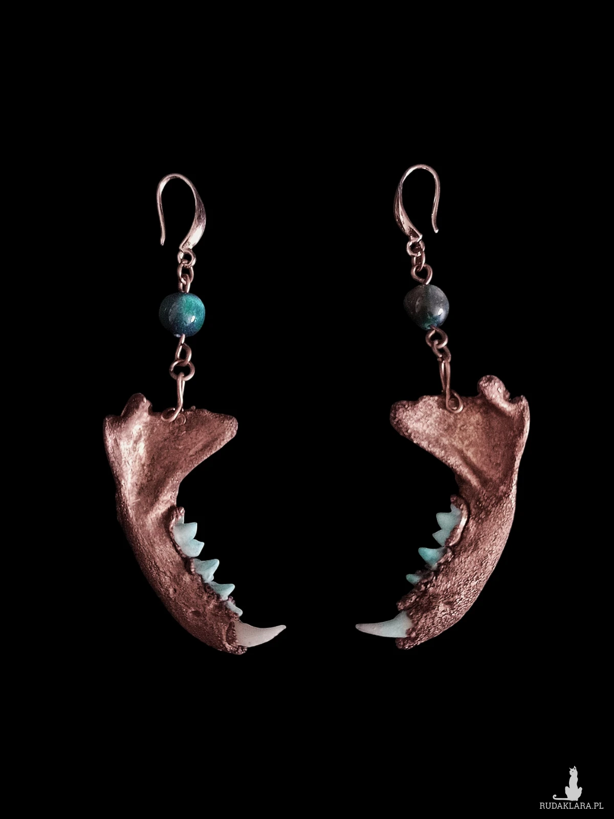 Pokryte miedzią żuchwy norki z holo- zielonymi koralikami pięknie mieniącymi się w świetle ✨