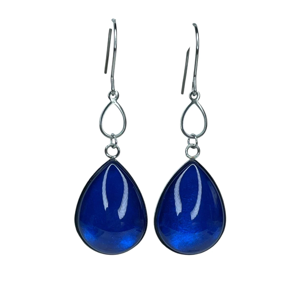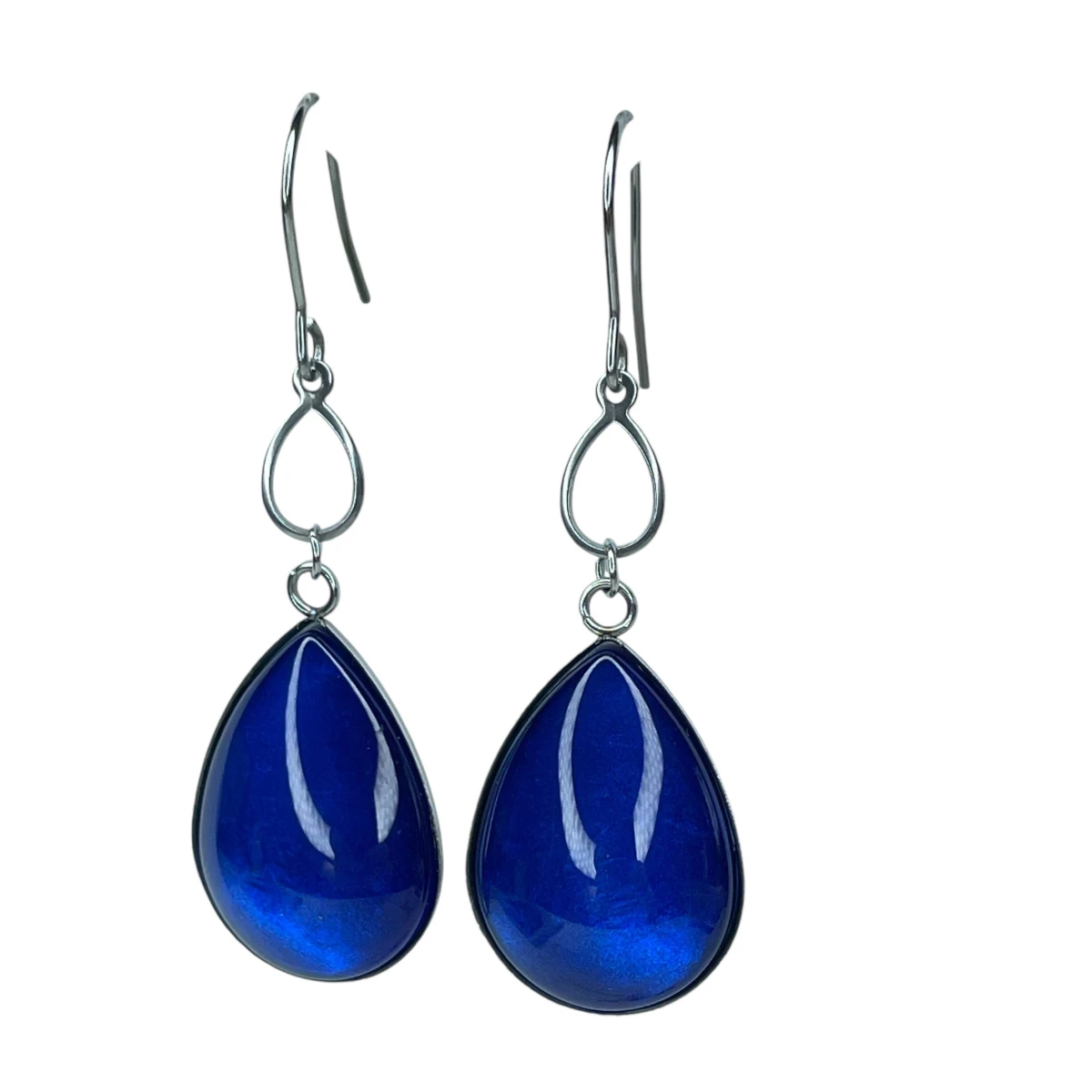 Te pełne blasku kolczyki są częścią kolekcji “W blasku perłowego księżyca”. Kolczyki wykonane są z ręcznie malowanych kaboszonów umieszczonych w bazach ze stali szlachetnej. Szklane elementy zachwycają subtelnym, opalizującym blaskiem, który jest niczym odbicie księżyca na tafli wody. Kolczyki mienią się w świetle, przyciągając wzrok i dodają elegancji każdej stylizacji. Ten dodatek jest idealny dla osób ceniących sobie wyrafinowaną i ponadczasową biżuterię. Materiał: stal szlachetna, malowane ręcznie szkło Wykończenie: połysk Długość kolczyków: ok 6,5 cm Średnica kaboszonu: 25×18 mm SKU: e38/12 Jak dobierać komplety? Kolory na zdjęciach mogą się różnić ze względów technicznych. Aby dobrać identyczny odcień, zwróć uwagę na numer SKU produktu. Pierwsza część to numer modelu, a numery po “/” to kolor, np. /17 oznacza morski perłowy. Produkty z tym samym SKU po "/" mają identyczny kolor. Dzięki temu możesz łatwo tworzyć komplety, mając pewność, że biżuteria jest w tym samym odcieniu. Stwórz własny komplet! Jeśli nie ma biżuterii w wybranym modelu lub kolorze którego szukasz, możesz ją zamówić indywidualnie. Wyślij do nas maila z nazwą, numerem modelu i kolorem, a my w miarę możliwości wykonamy biżuterię na zamówienie. Termin realizacji ustalamy indywidualnie. Biżuteria zostanie elegancko zapakowana. W przypadku zakupu kompletu, biżuteria zostanie zapakowana razem. Kolory na zdjęciach mogą delikatnie różnić się od rzeczywistych.