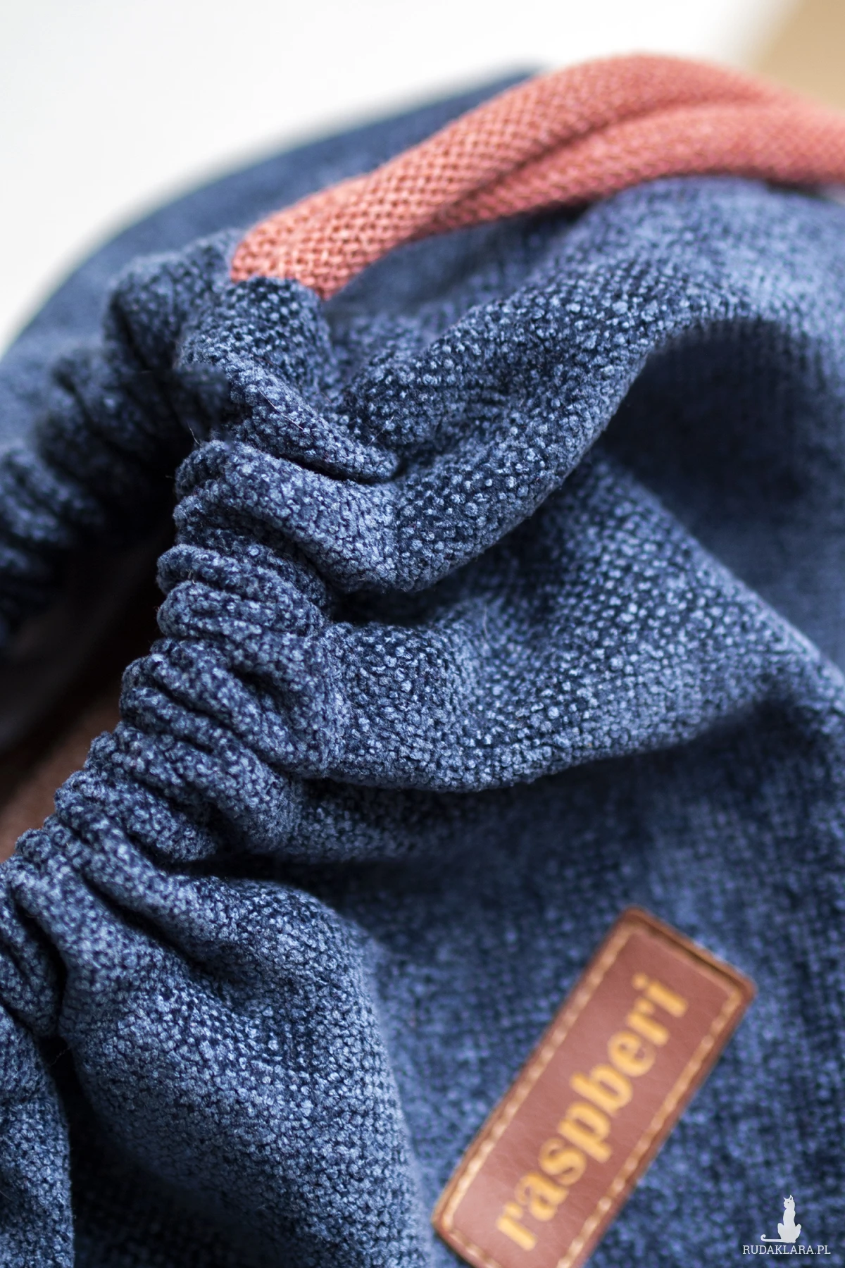 Workoplecak z tkaniny w kolorze granatowym.
