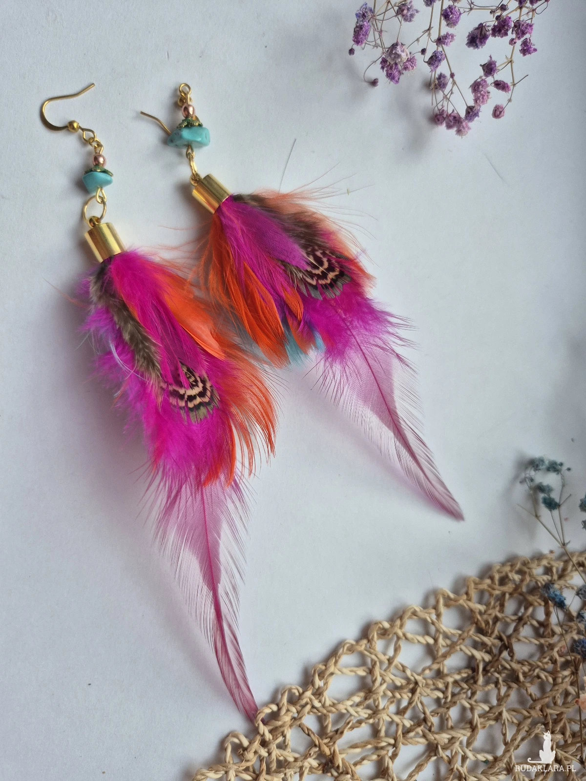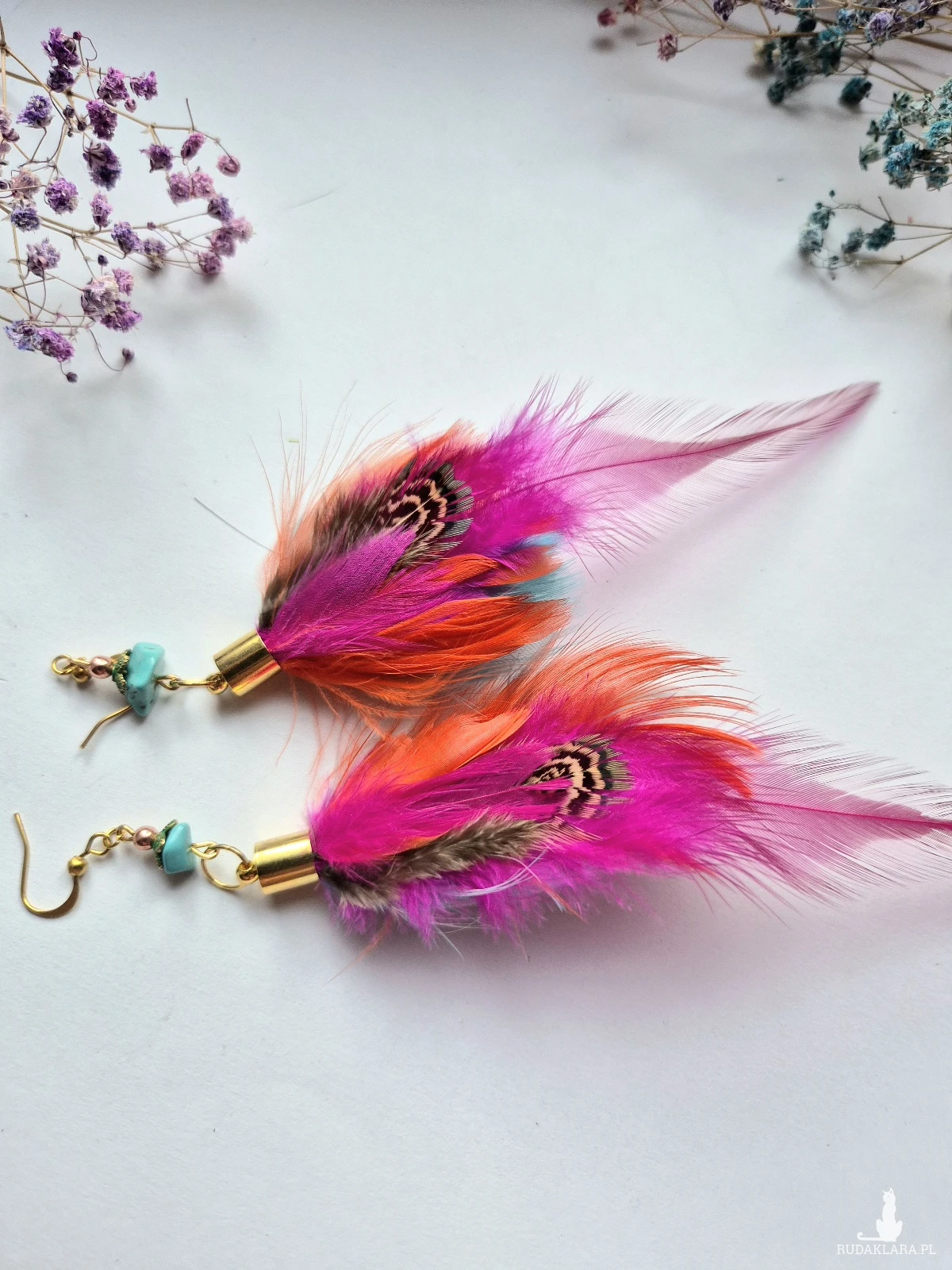 Kolczyki Boho amarantowe kolorowe szalone długie  przepiękne leciutkie bardzo zwracają uwagę robione ręcznie, obłędne kolory polecam