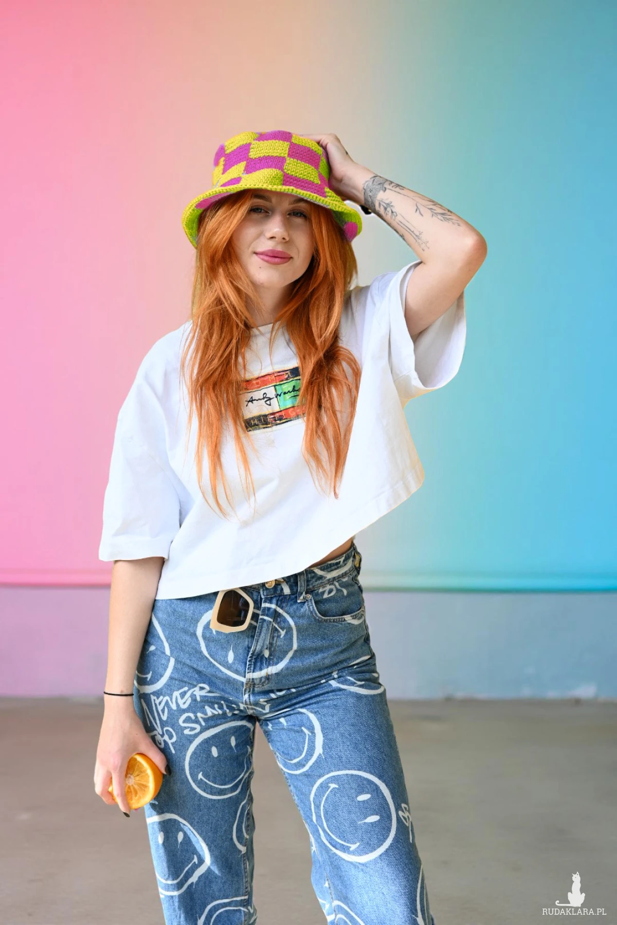 Do tego dochodzi bucket hat w kolorach dragonfruit i lime green, soczysta mieszanka, która od razu poprawia humor!