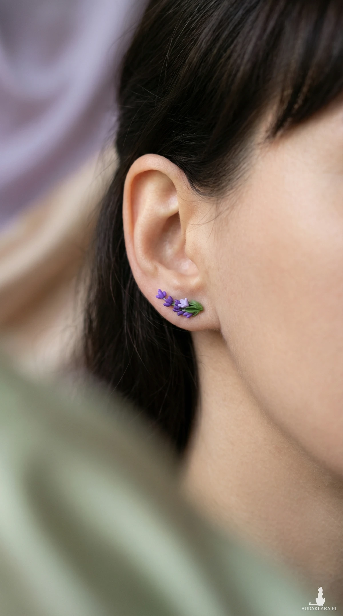 Piękne i oryginalne kolczyki z kwiatami lawendy.