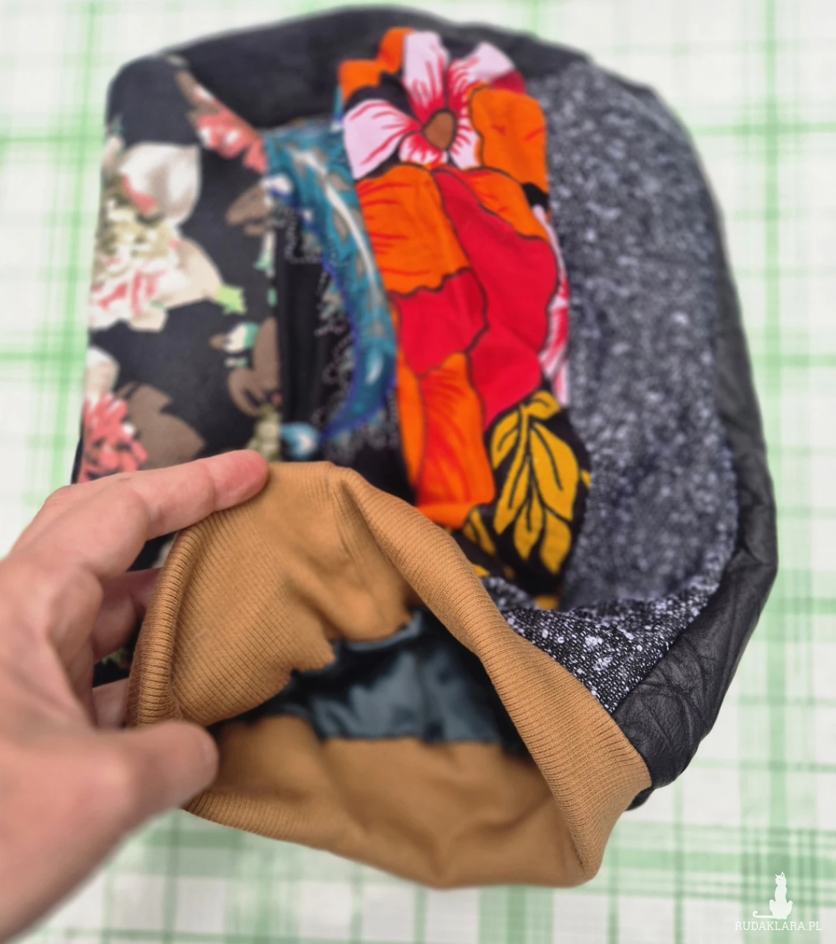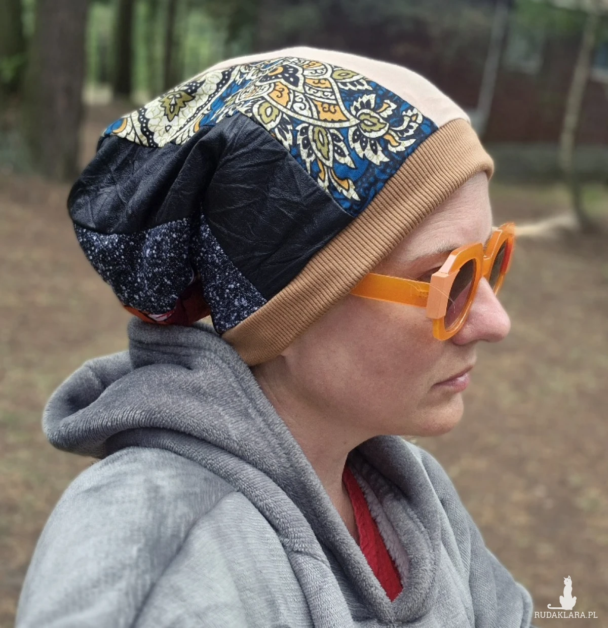 Czapka ciepła miła patchworkowa