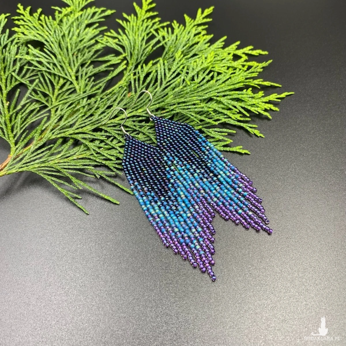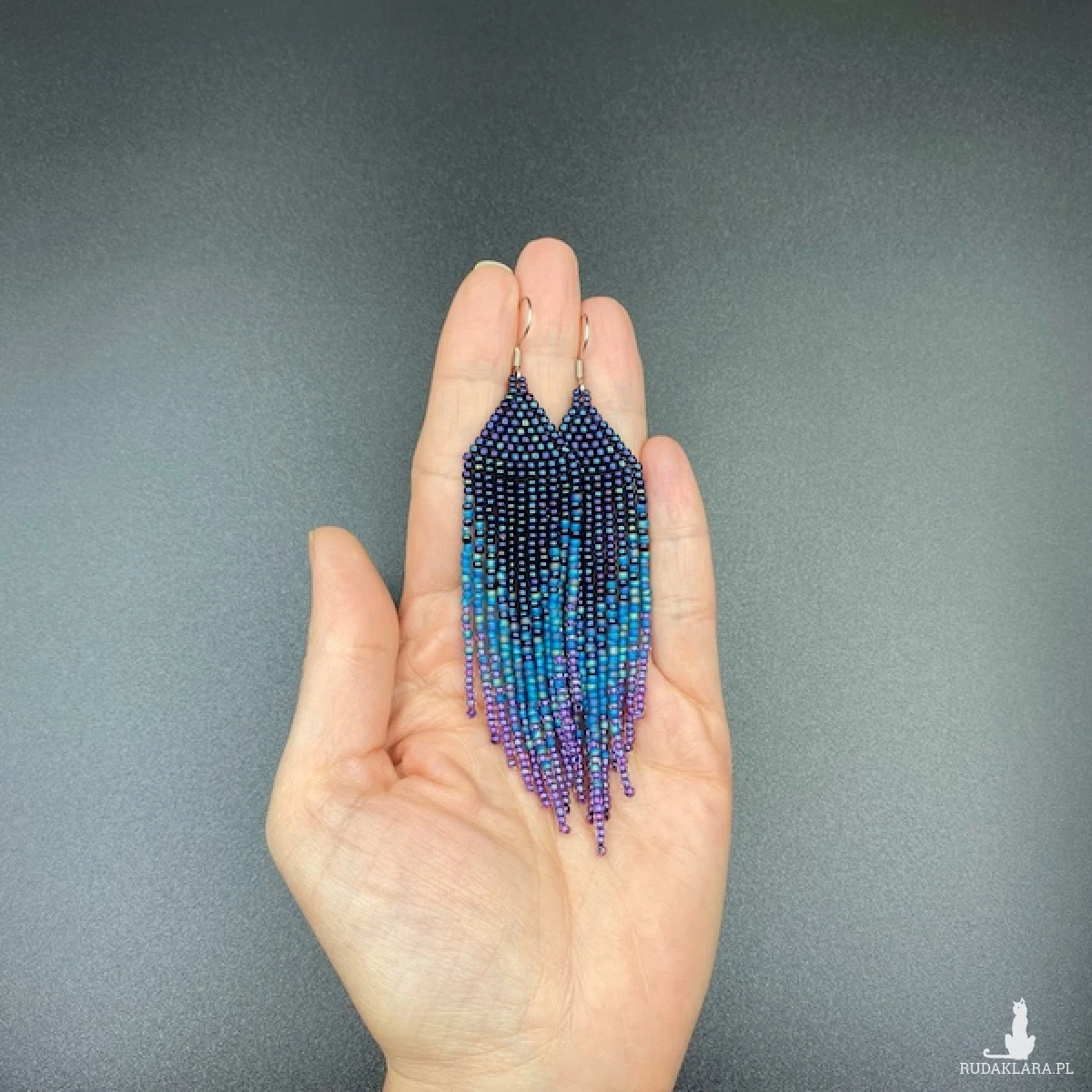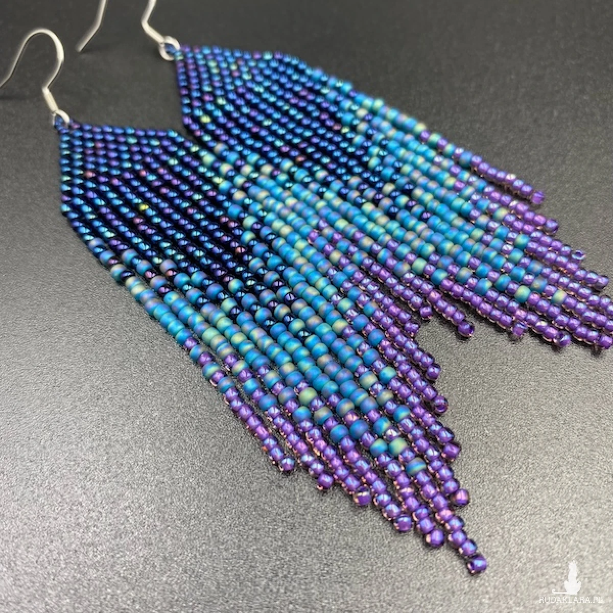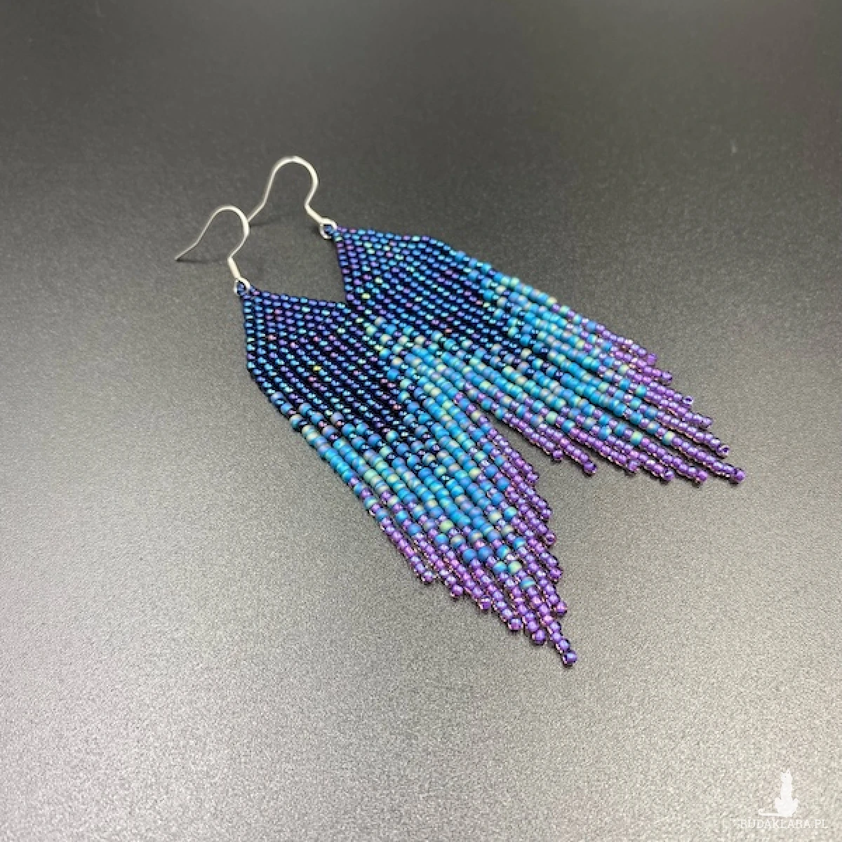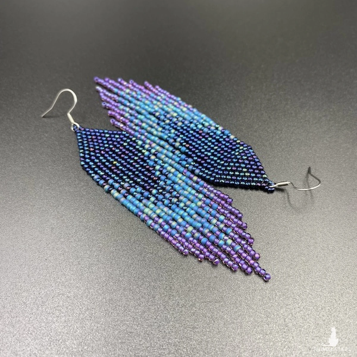 Kolory kolczyków: metaliczny granatowy, niebieski, fioletowy.