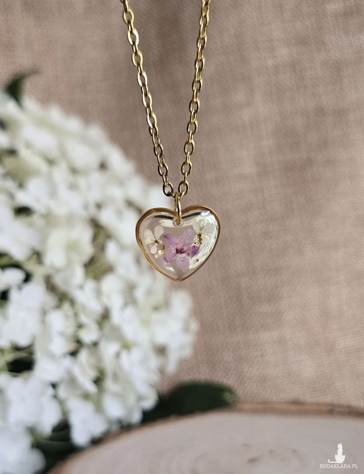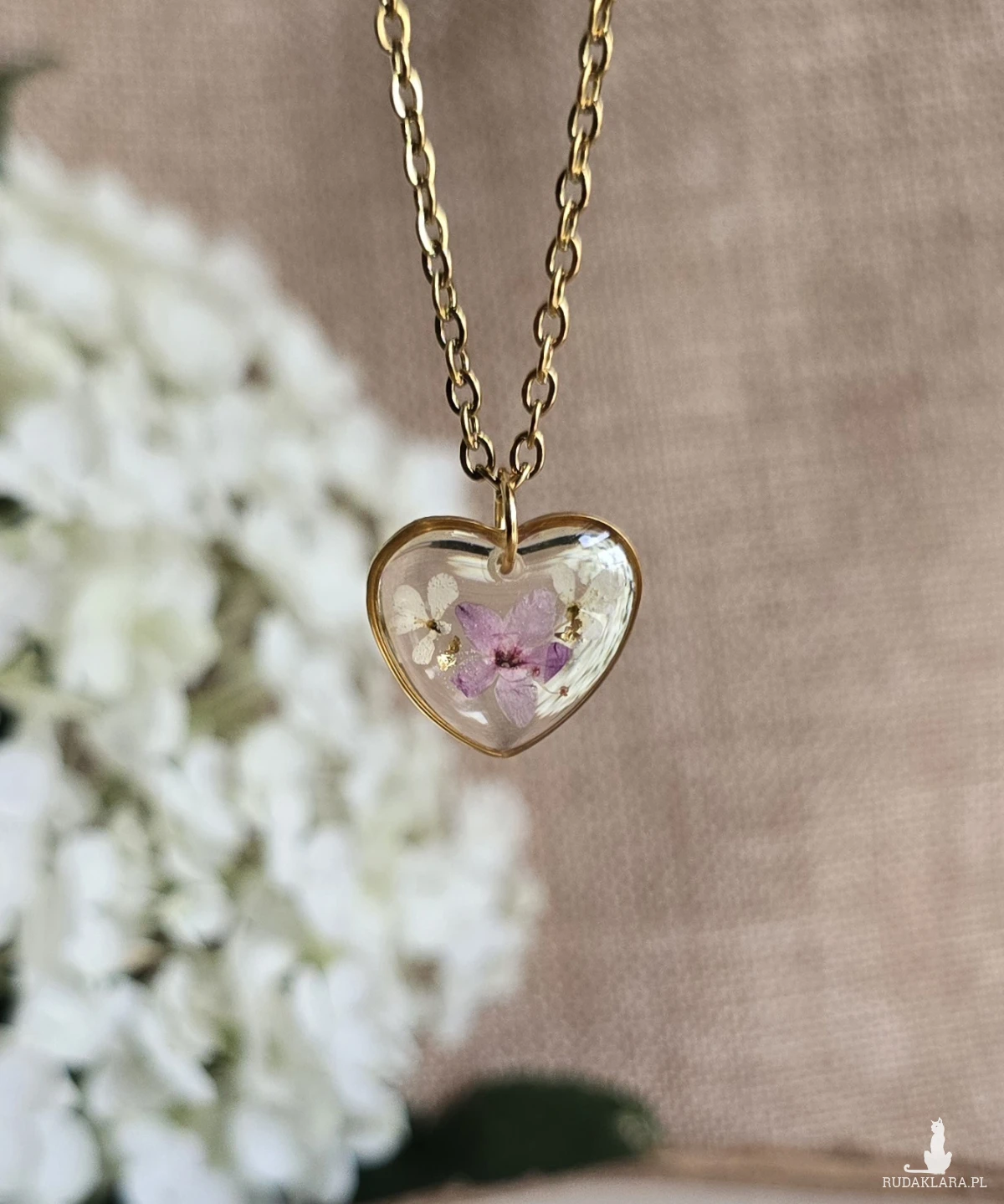 Oferuję Państwu unikalną biżuterię. Zawieszka jest wykonana z suszonych kwiatów i żywicy epoksydowej. Biżuteria jest wspaniałym i oryginalnym prezentem na lata.