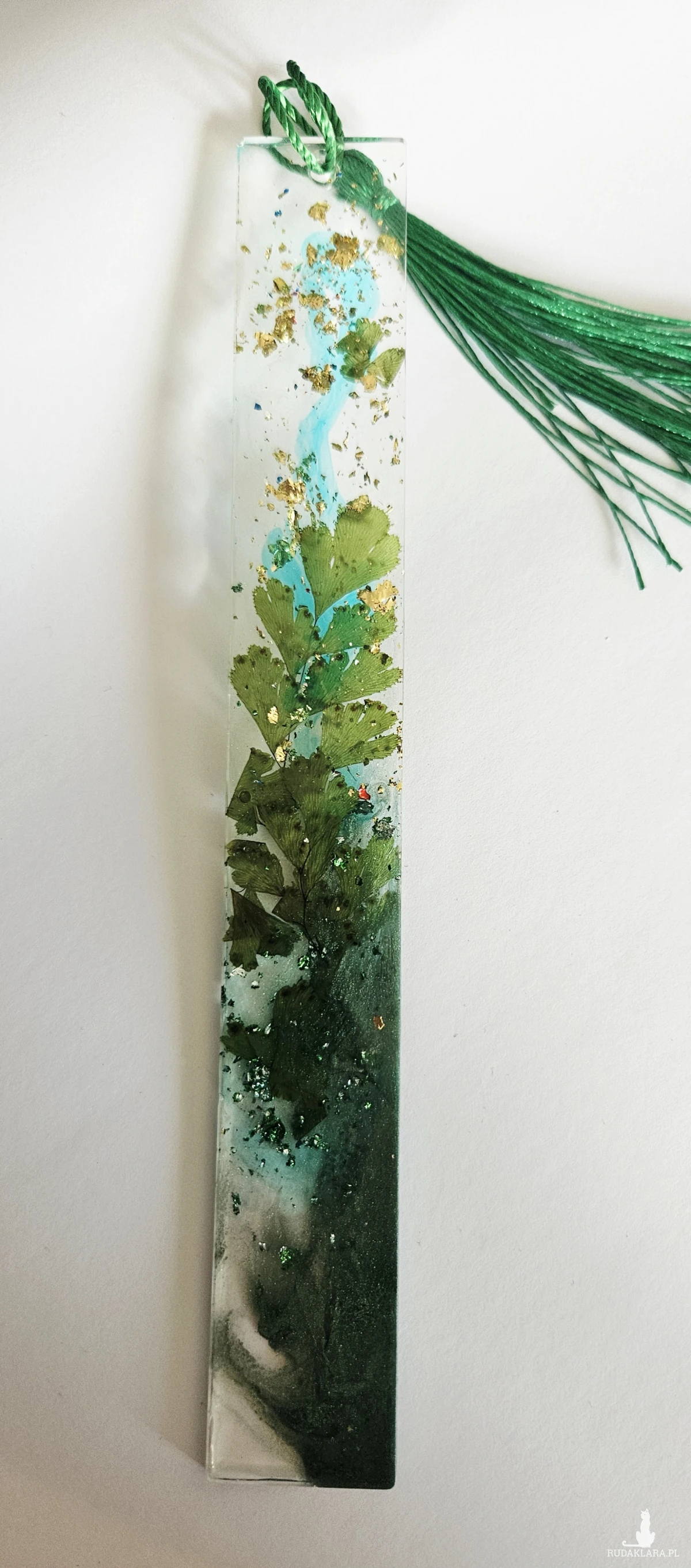 Zakładka z żywicy epoksydowej z losciwm paproci turkus i zieleń D16