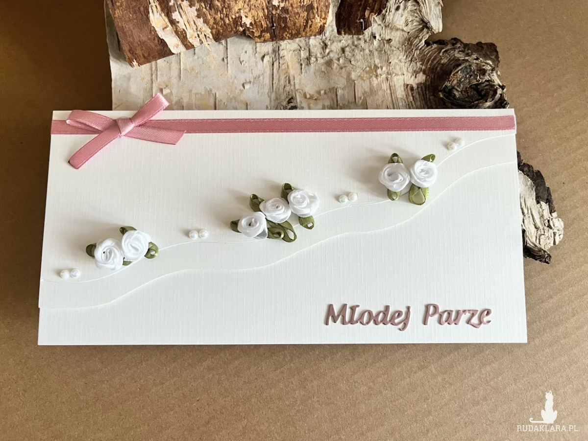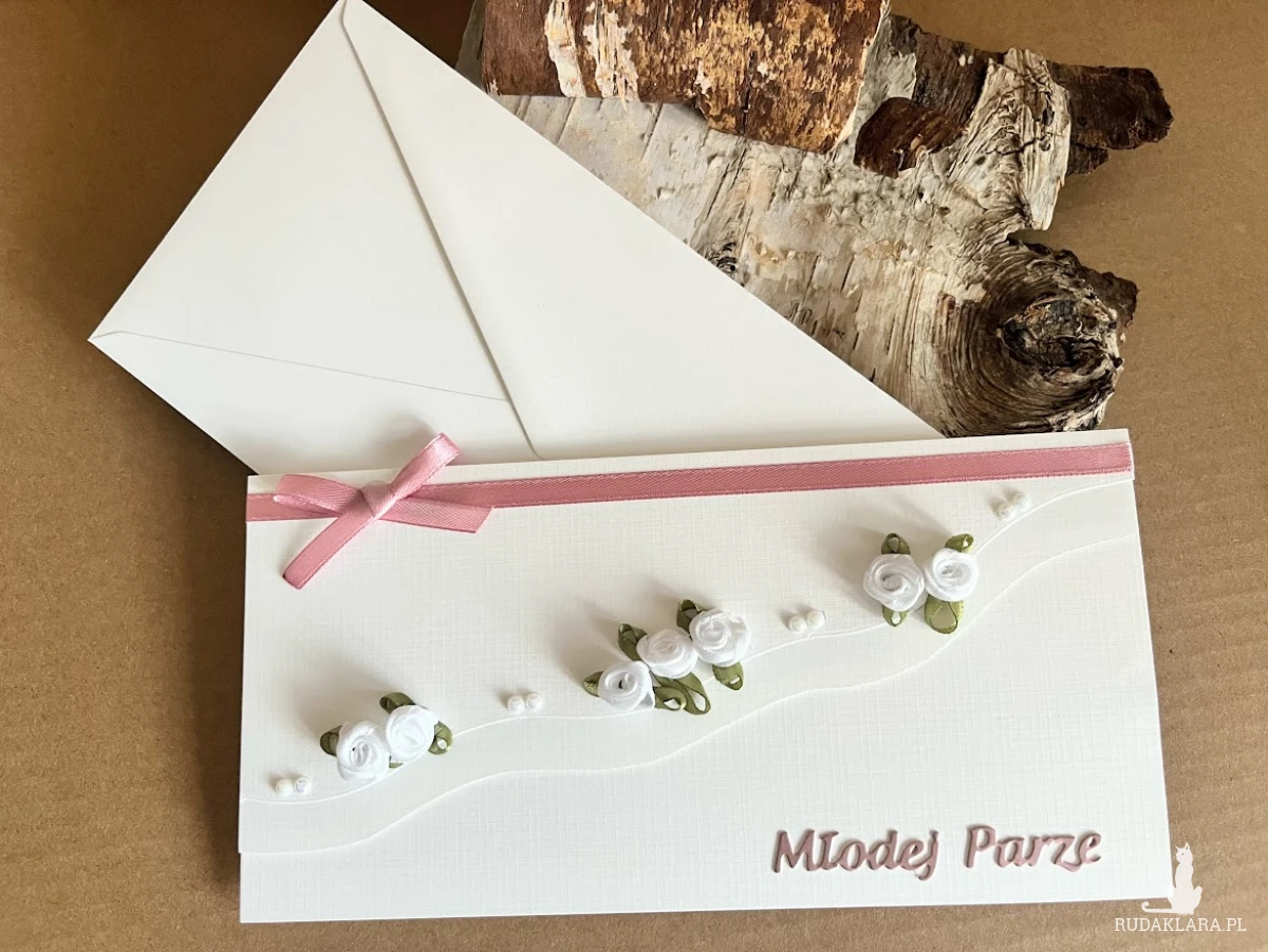 Wyjątkowa i elegancka kartka okolicznościowa w bieli,wykonana z najwyższej jakości materiałów do scrapbookingu . Zdobiona elementami 3D. Wykonana z dbałością o każdy detal. Wewnątrz kartki znajduje się kieszonka na małe co nieco lub kupon lotto oraz gotowe życzenia do własnoręcznego podpisu. Wielkość kartki 10,5x21 w komplecie z kopertą
