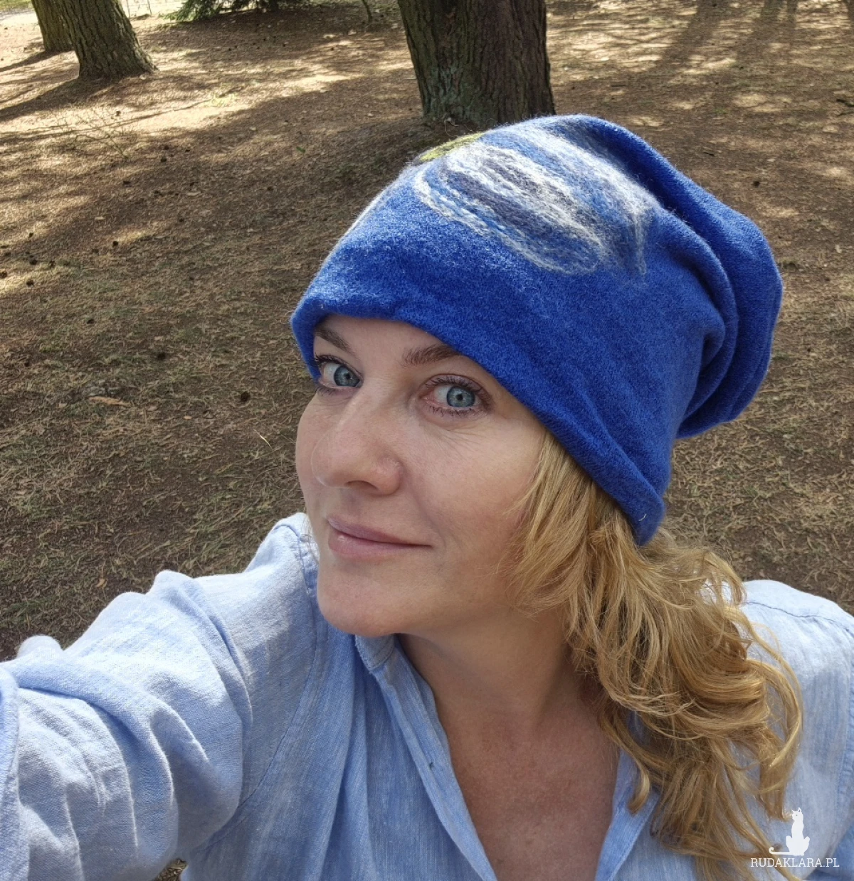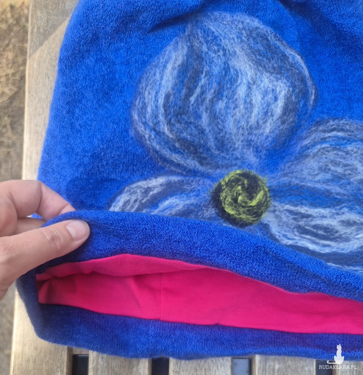czapka  wełniana filcowana zimowa niebieska ostatnia,  handmade w kwiaty na podszewce-- rozmiar uniwersalny, wełniana, filcowana wełną merynosów, bardzo ciepła, fantastyczna, miła, miękko układa się na głowie, niesamowicie zwraca uwagę, doskonałą na codzienne noszenie jak i na prezent, zawsze możesz ją założyć po basenie i przeżyjesz,box a1