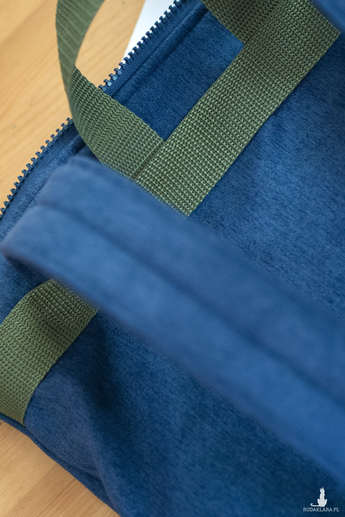 Regulowane paski. W środku biała, bawełniana podszewka w kwiaty oraz mała kieszonka na suwak.