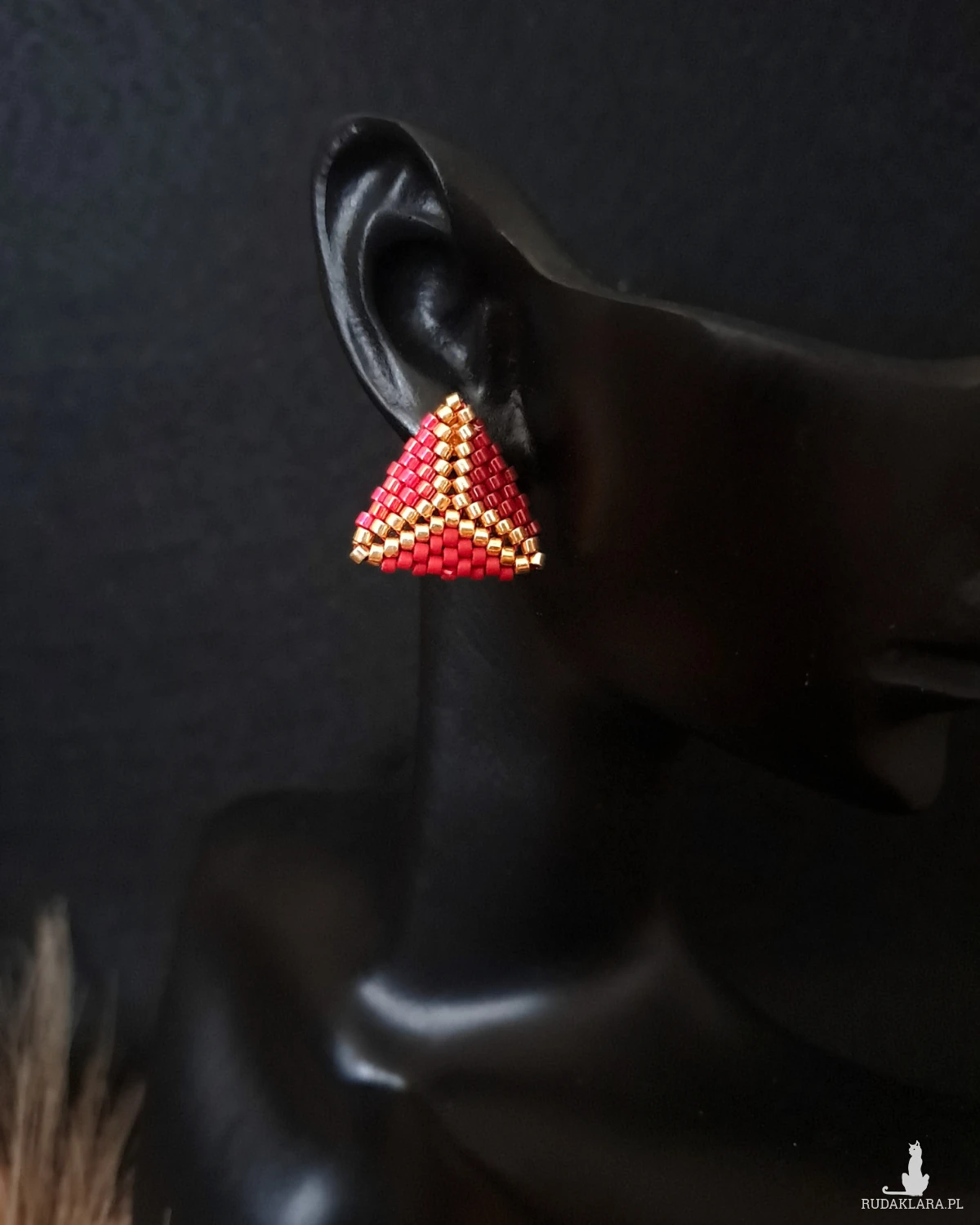 Są małe, ale mówią wiele. Kolczyki Red Triangle Chevron to biżuteria dla kobiet, które nie boją się koloru, ale szukają elegancji - nie przesady. Ręcznie wykonane z japońskich koralików Miyuki Delica, łączą głębokie odcienie czerwieni z ciepłym złotem i stonowanym brązem. To kolczyki stworzone na jesień - i na każdy dzień, w którym chcesz poczuć się silna, stylowa i obecna.