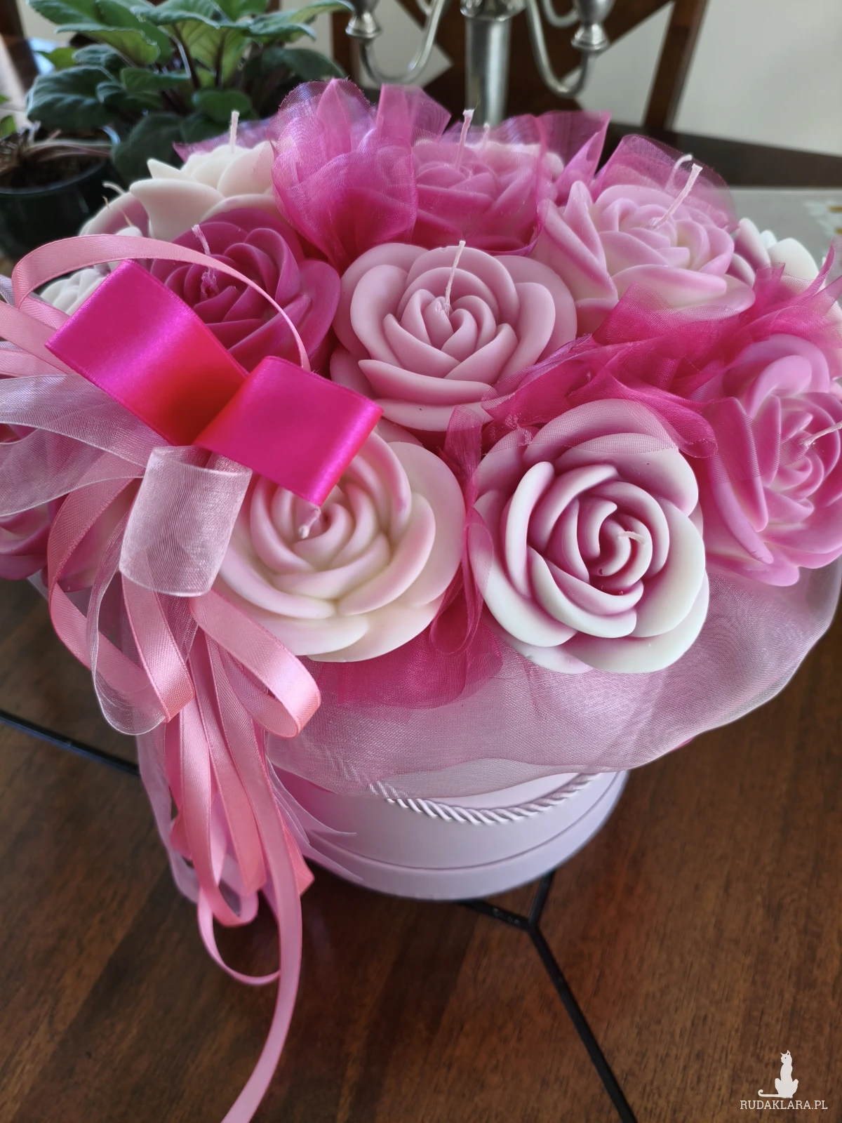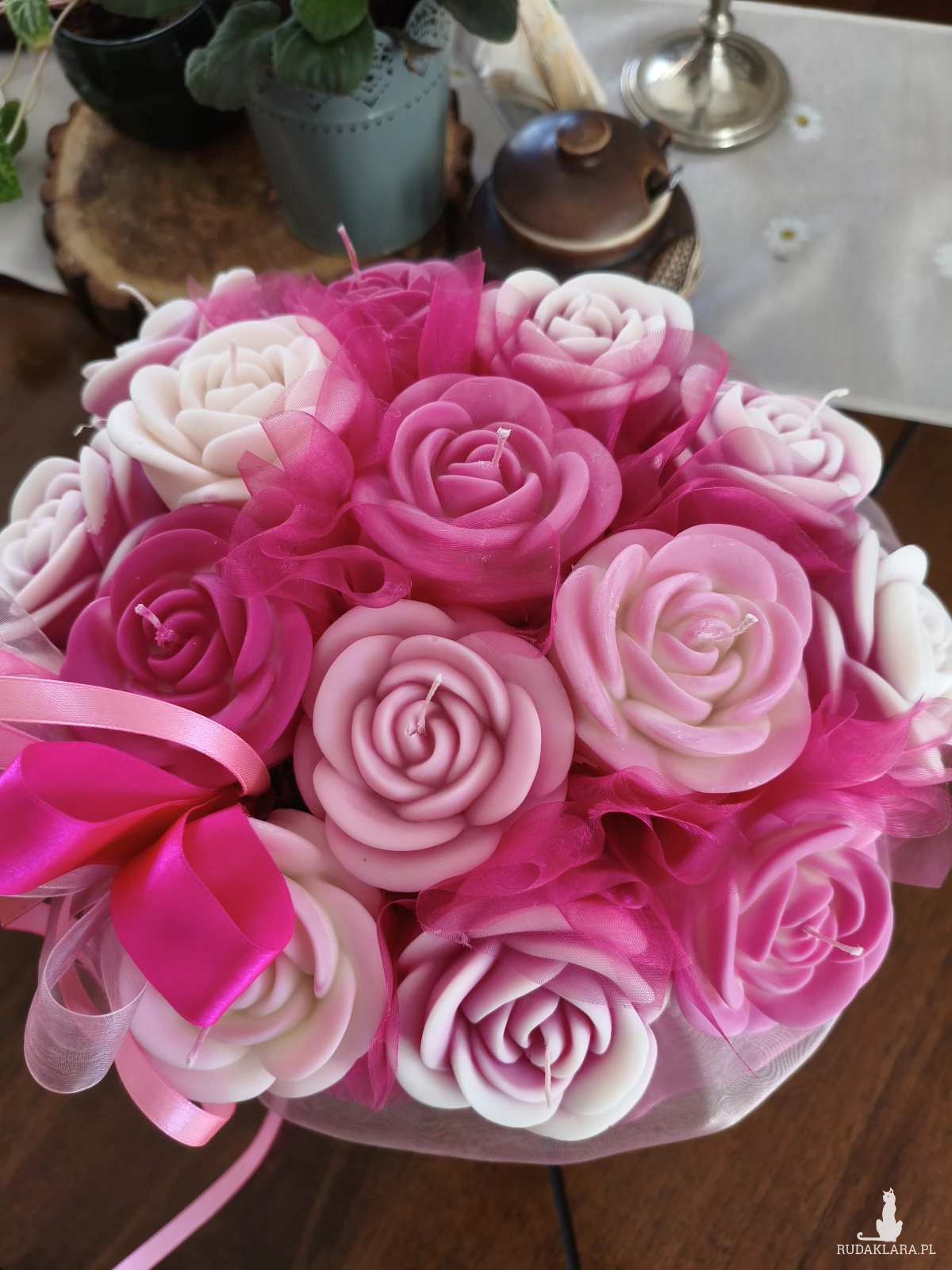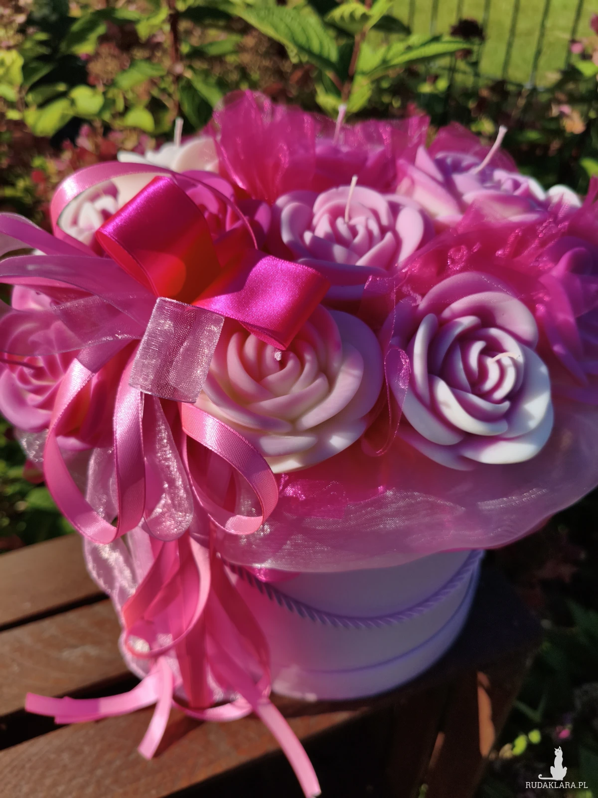 Flower Boxowi, w którym znajdziesz ręcznie robione świece w kształcie róż wykonane z naturalnego wosku sojowego z przepięknym aromatem róży z nutką maliny i inne dodatki. Idealny na urodziny, rocznice, ślub, walentynki, dzień kobiet, chrzest, komunię czy jako podziękowanie – Flower Box łączy piękno natury z delikatnym aromatem, tworząc niezapomniane wrażenia. Świece wykonane są z naturalnego wosku sojowego oraz bawełnianego knota.