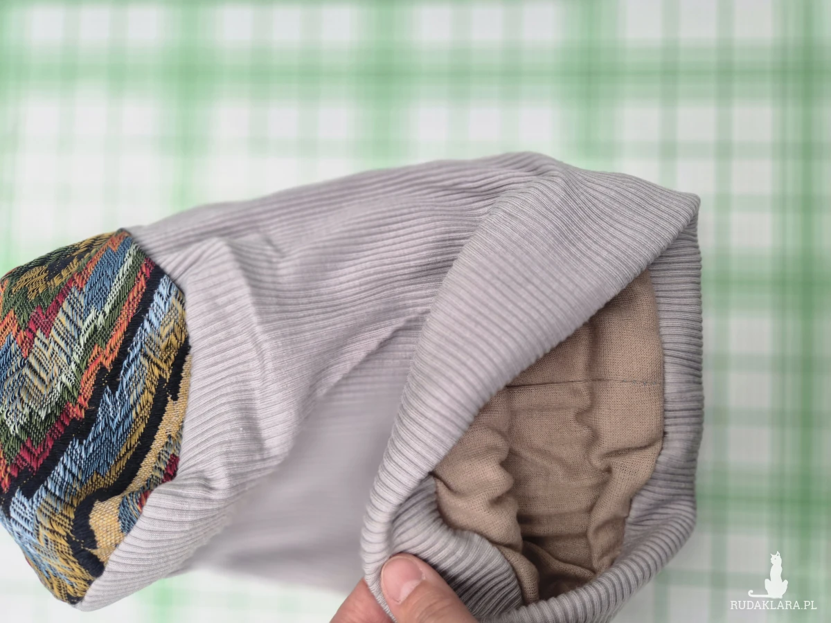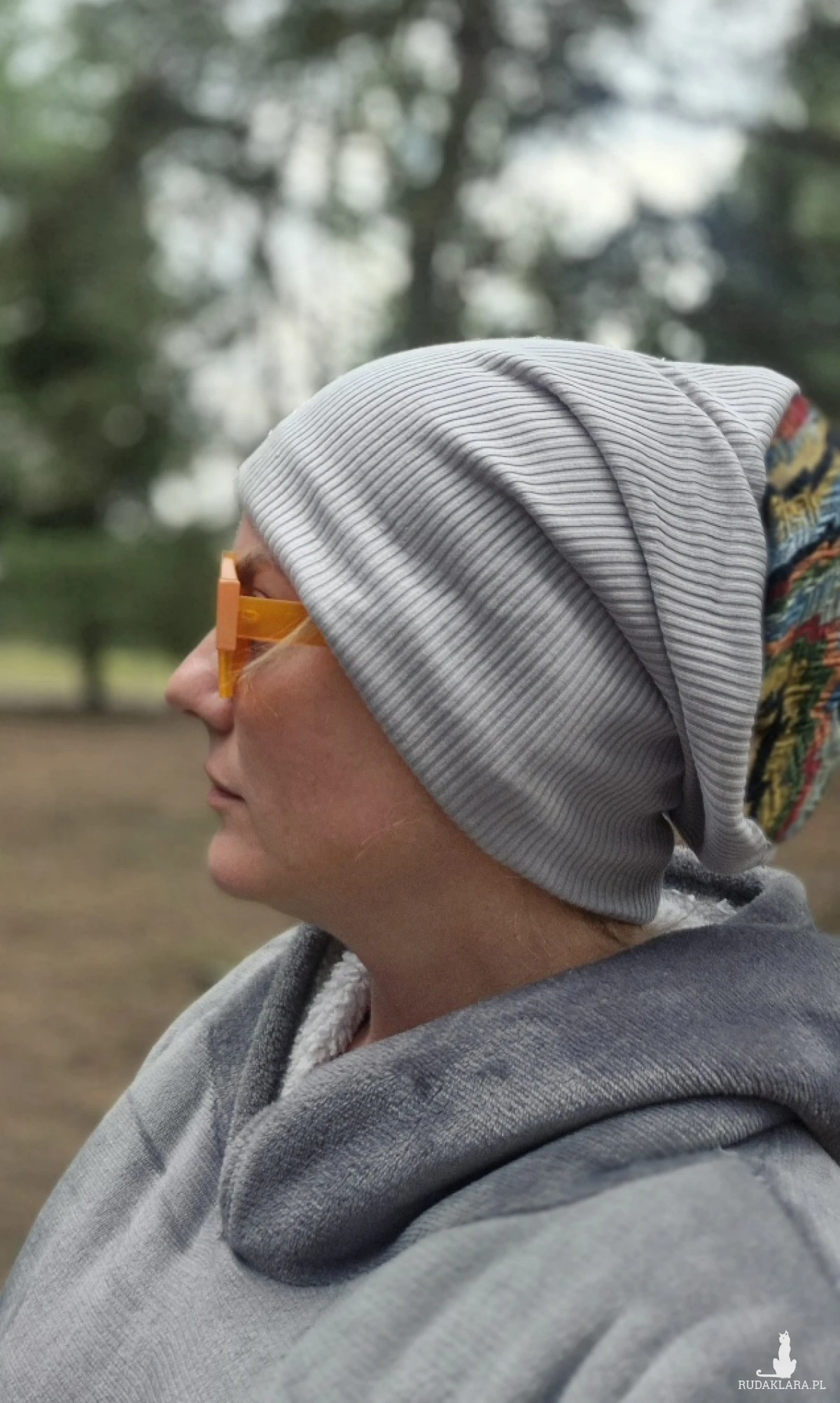 Czapka damska na podszewce dobra na codzienne noszenie rozmiar M miękka kolorowa zwracająca uwagę polecam szyta ręcznie box a1