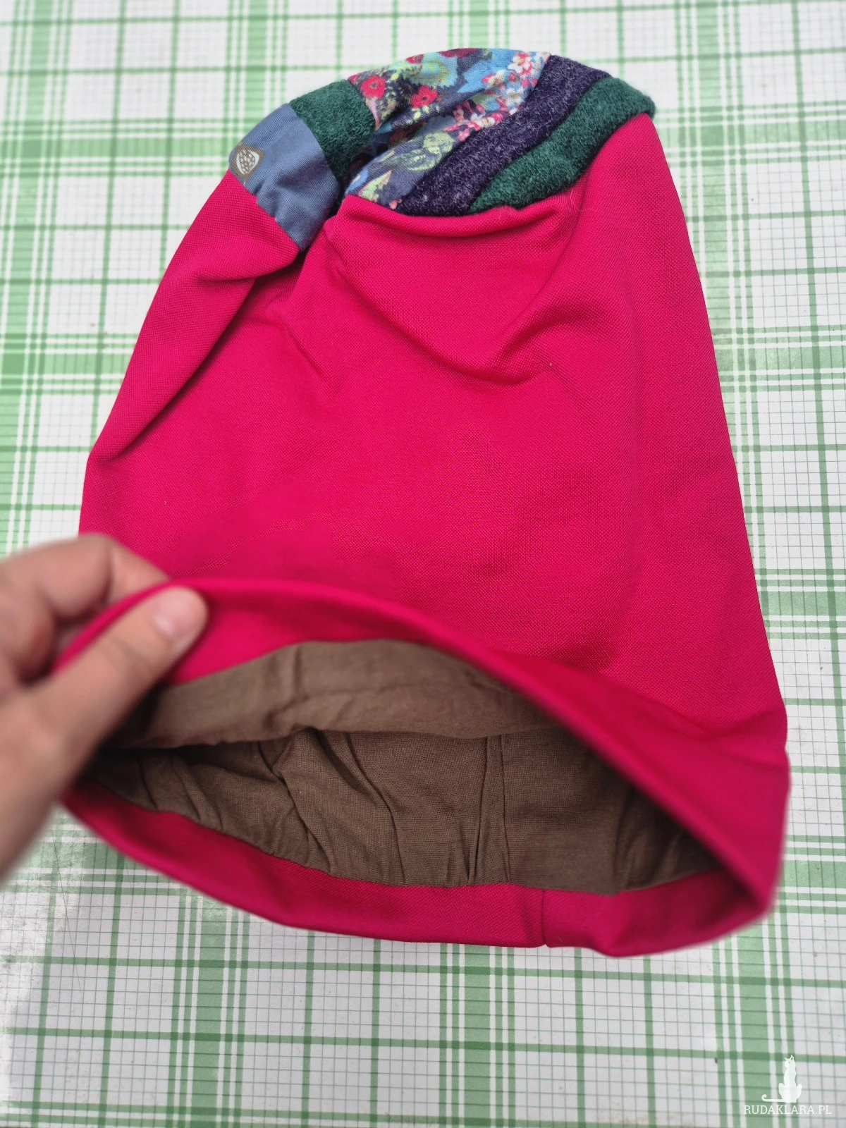 Czapka Amarant róż rękodzieło dobra na dzienne noszenie na podszewce rozmiar m 55 -56 cm,boxa1