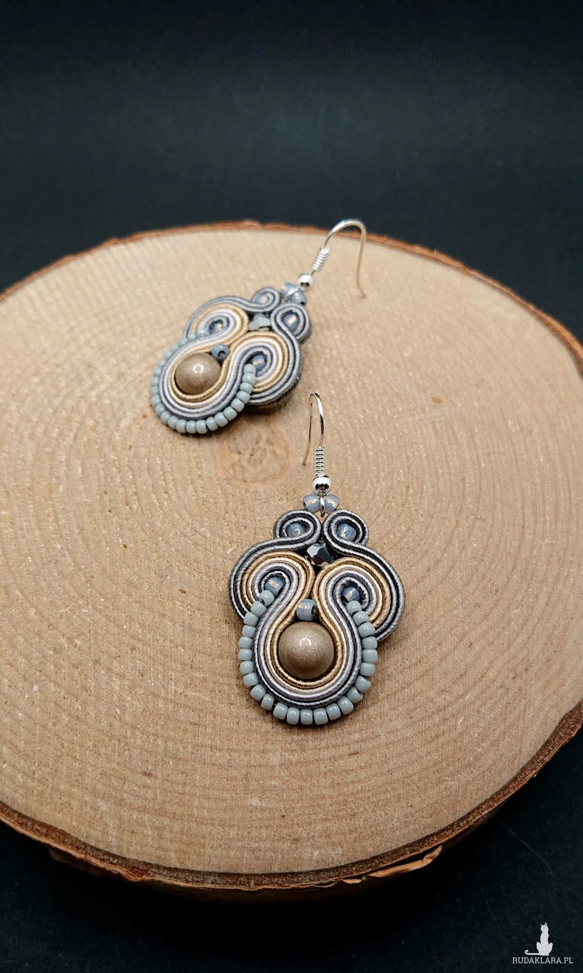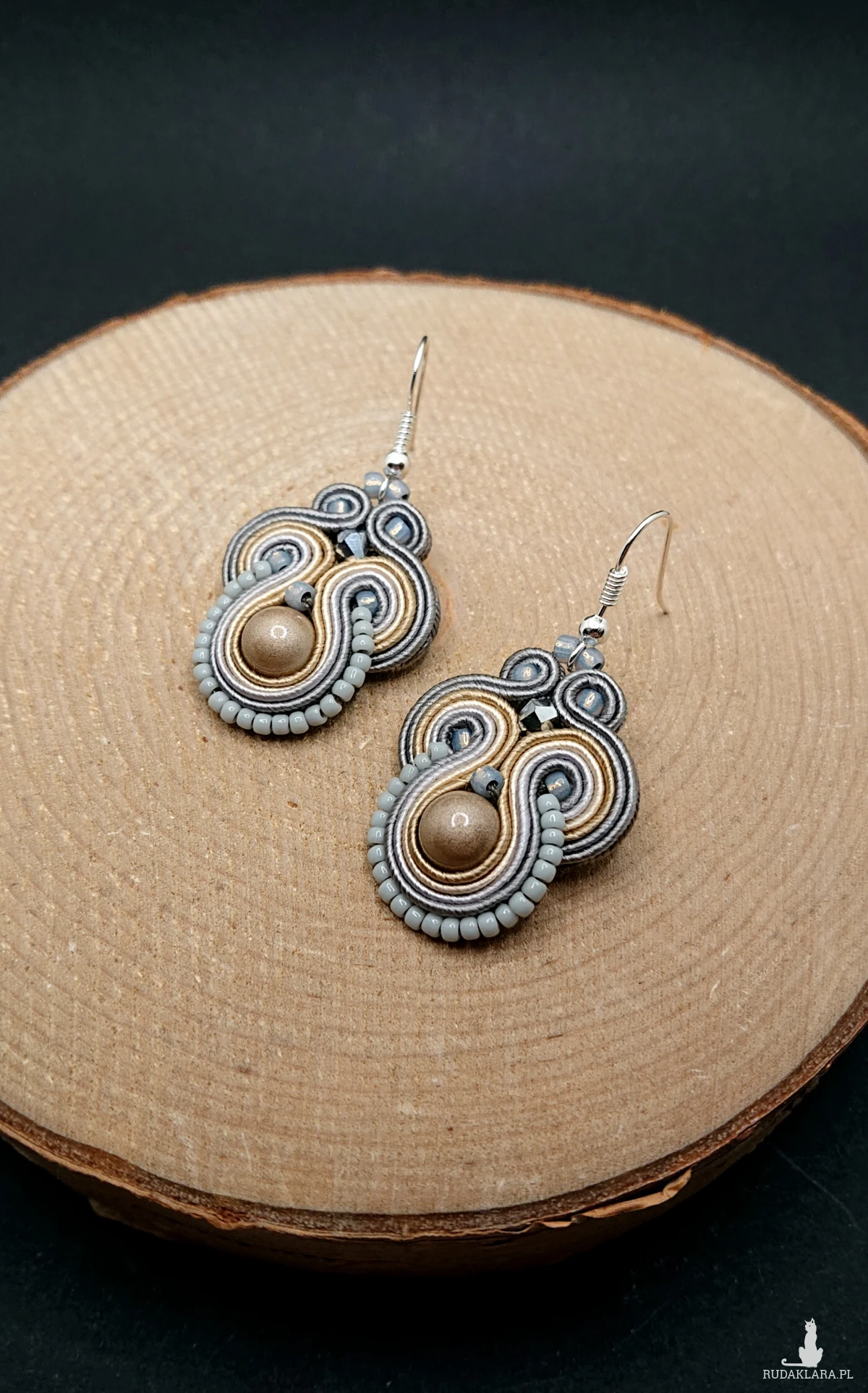 Beżowo-szare kolczyki sutasz