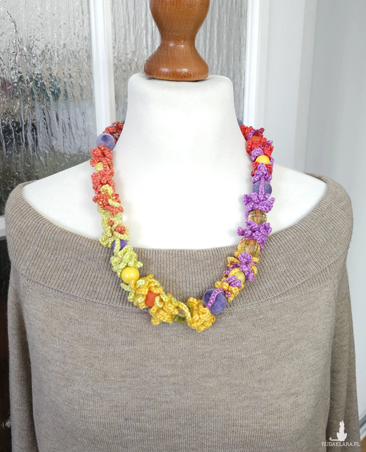 Niepowtarzalny naszyjnik z włóczki i akrylowych korali!