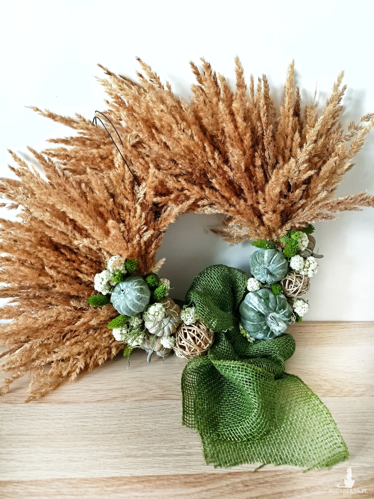 jesienny wianek na drzwi • wianek z suszonych kwiatów • wianek jesienny handmade • dekoracja jesienna z dyniami • wianek rustykalny na ścianę • stroik na stół jesień • naturalny wianek boho • dekoracja ze słomy • wianek z suszonych traw • ozdoba jesienna do domu • wianek z dyniami na drzwi