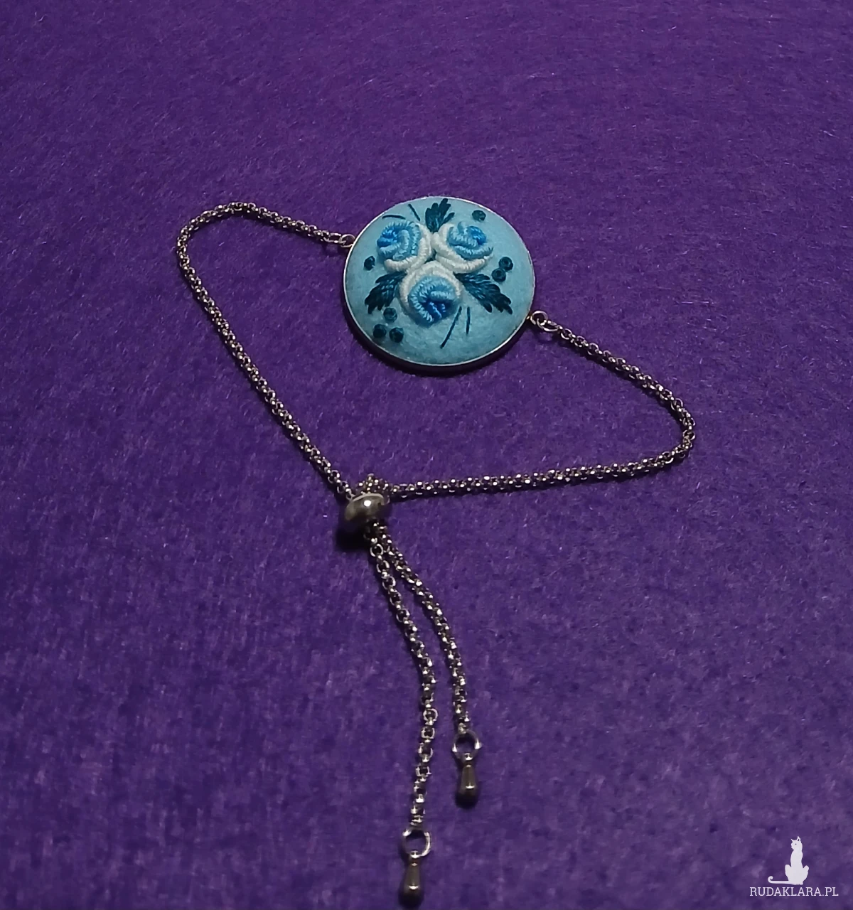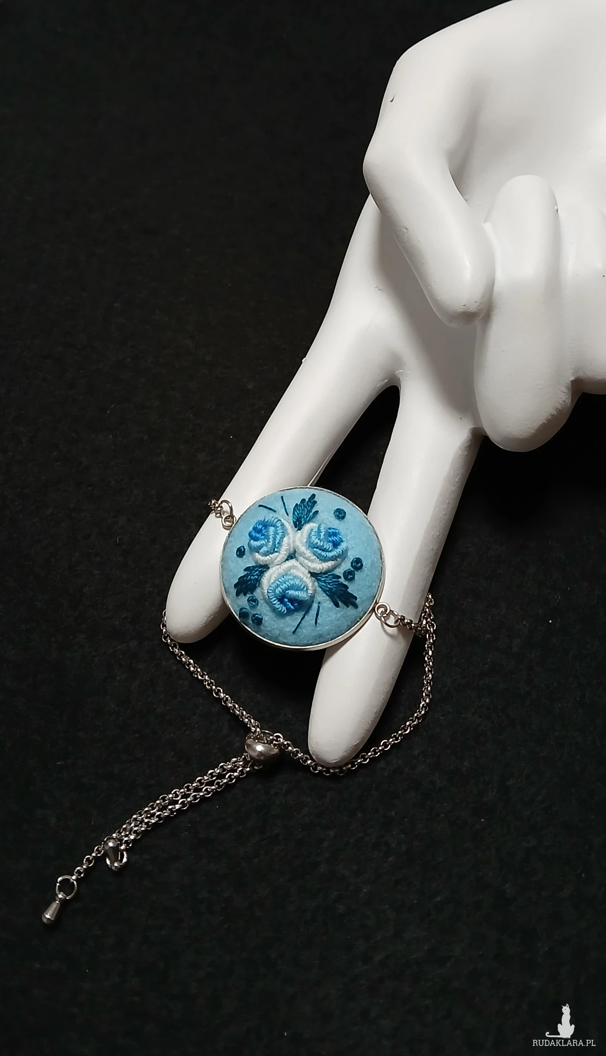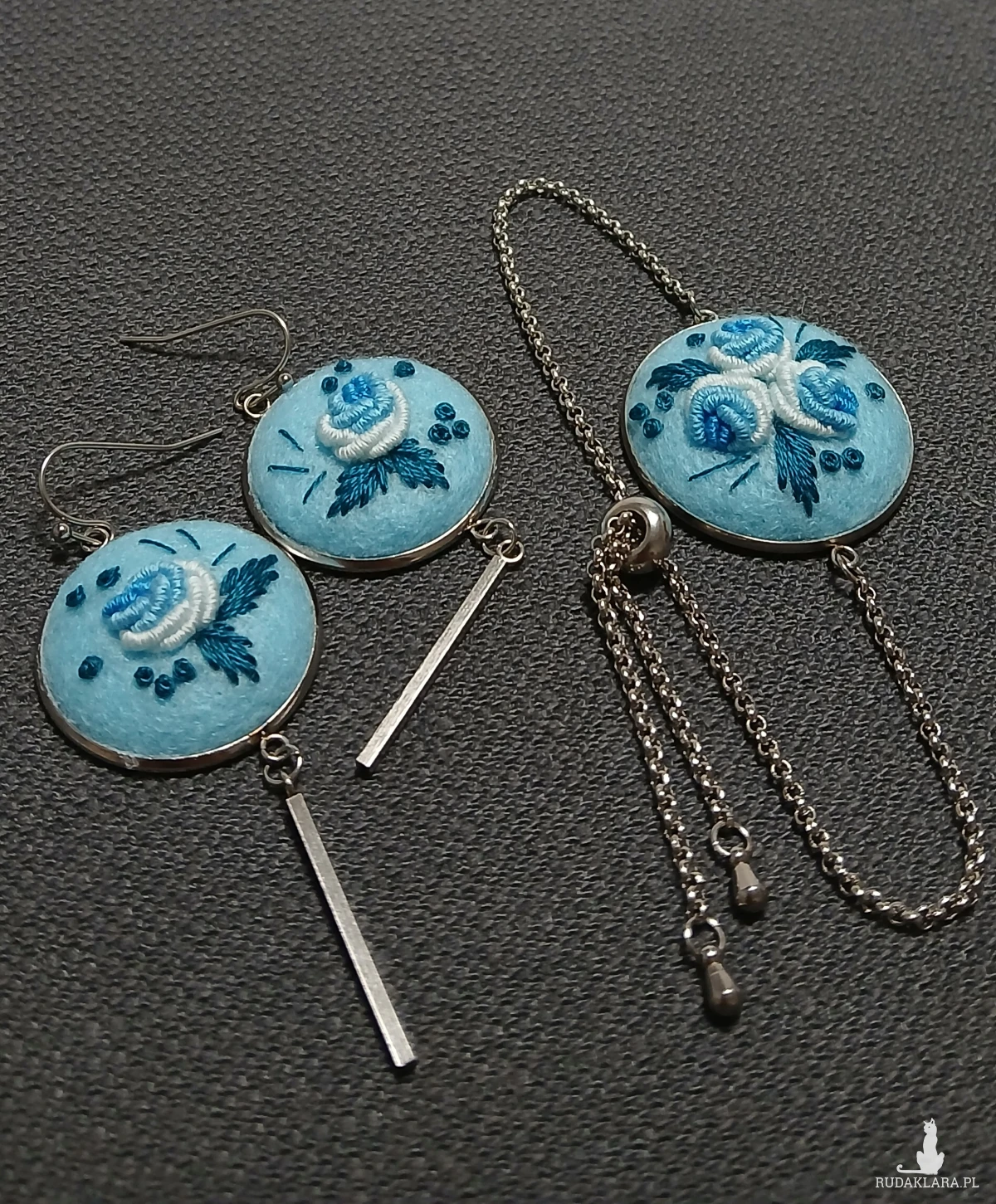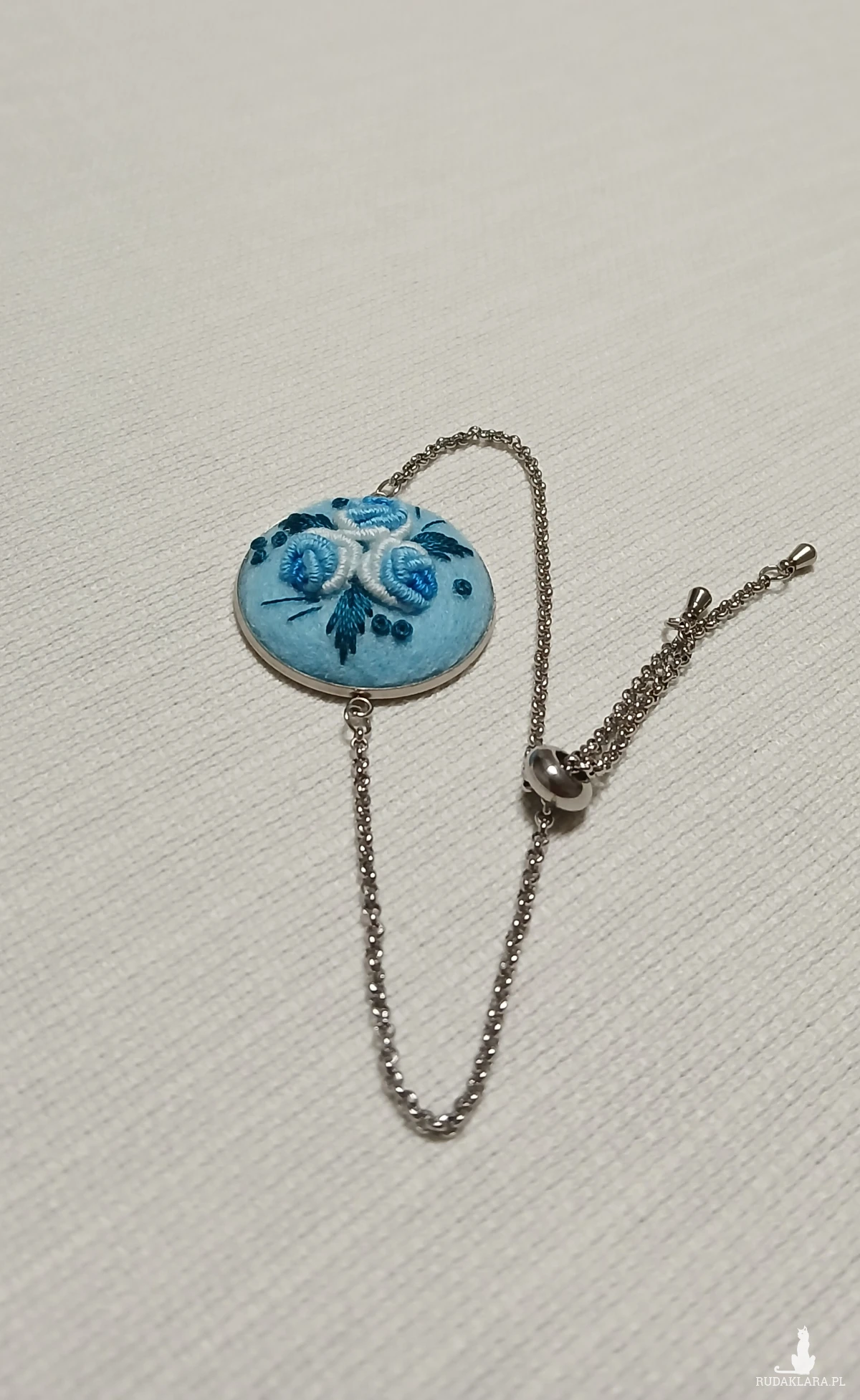Perfekcyjny haft na filcu wykonałam polską bawełnianą muliną za pomocą igły. Jest on zabezpieczony impregnatem do tkanin ale po dłuższym użytkowaniu można go odświeżyć przy pomocy delikatnego mydła i letniej wody.