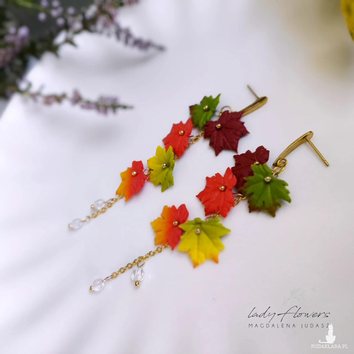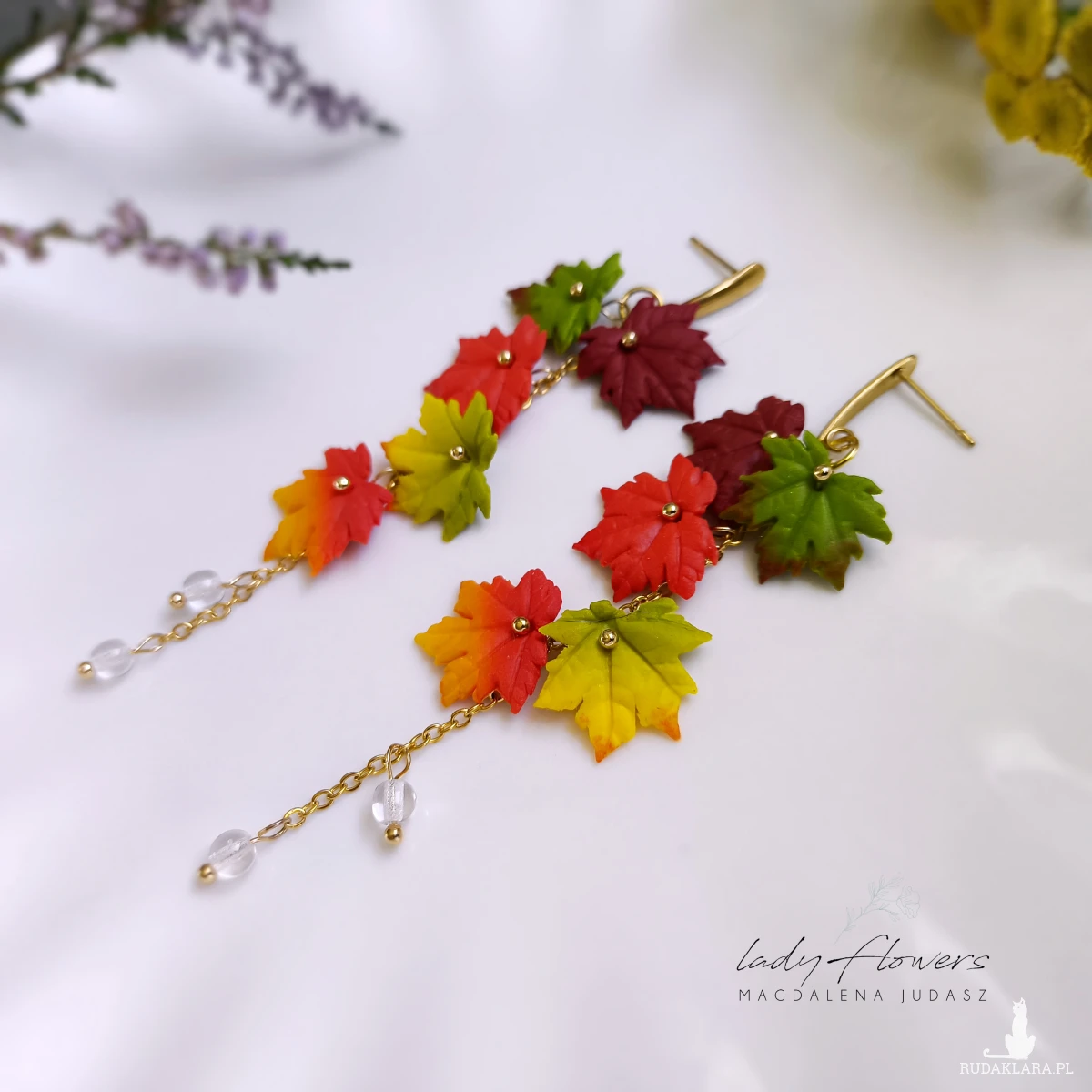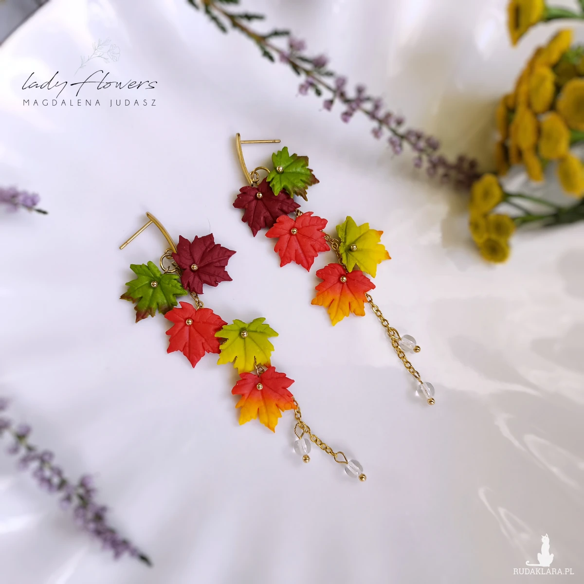 Długie kolczyki z ręcznie wykonanymi listkami klonu.