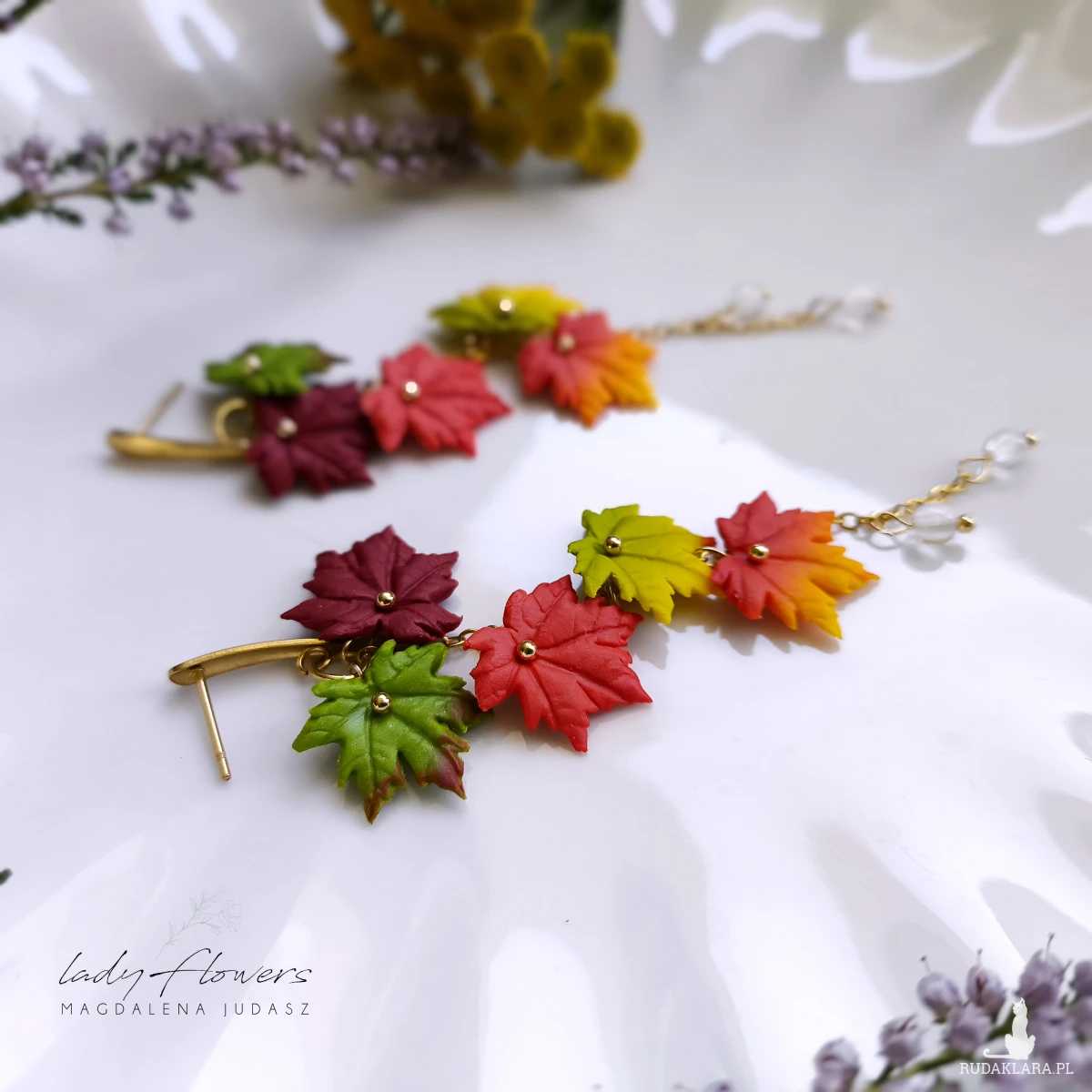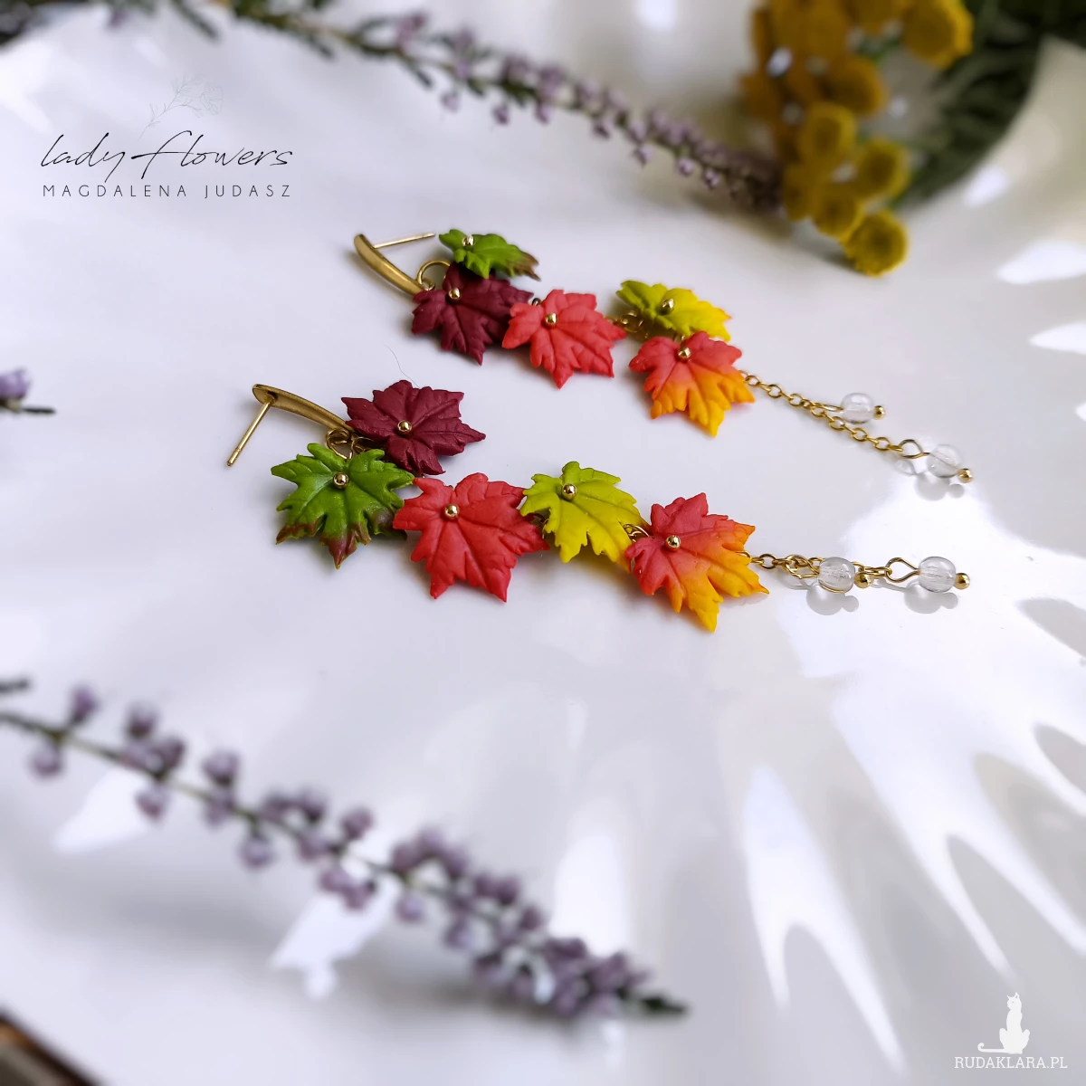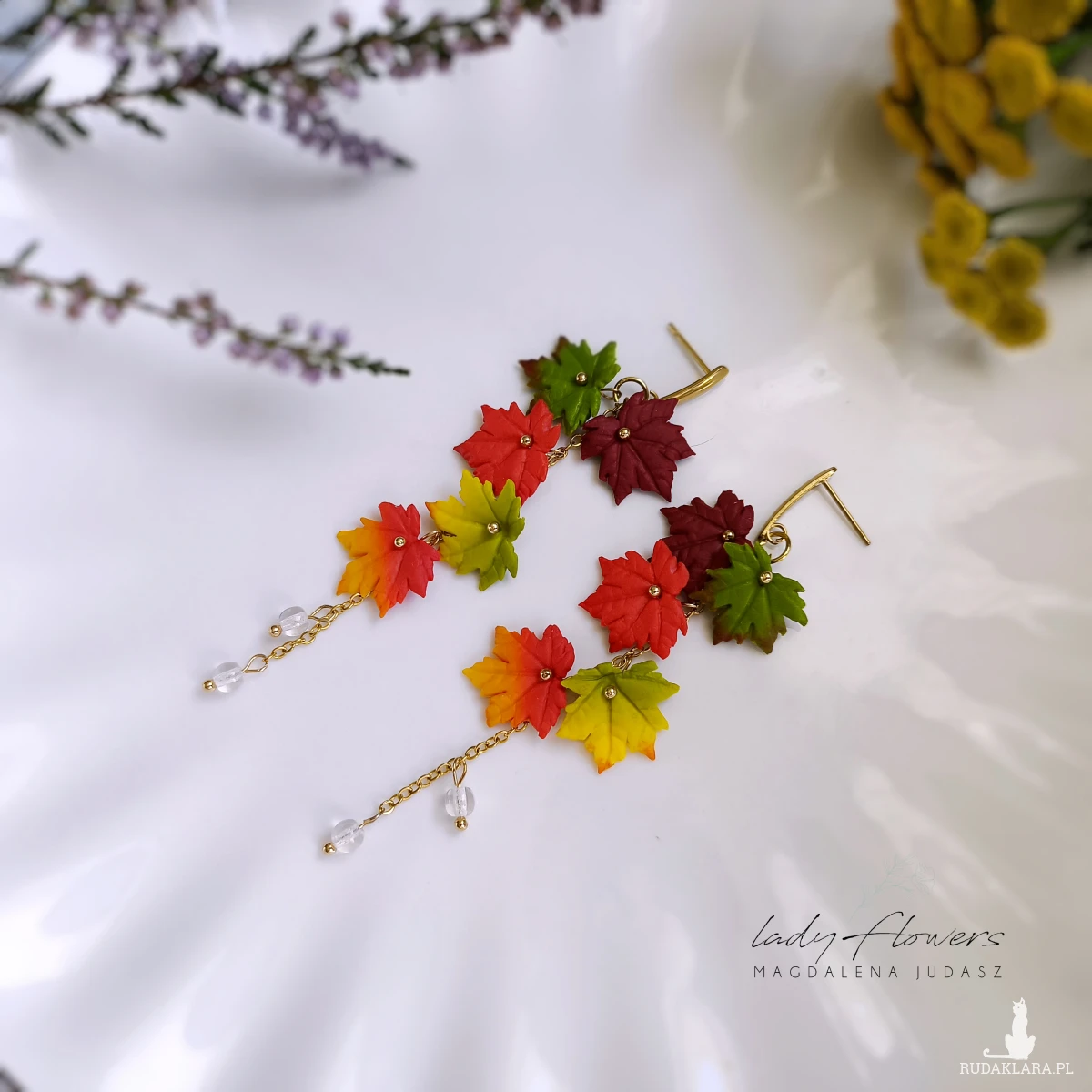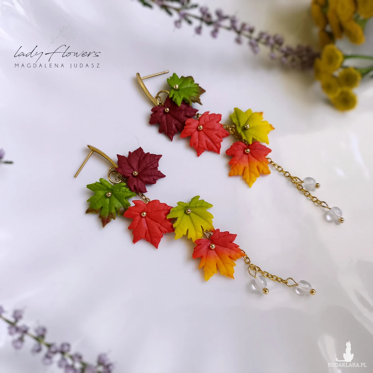 Długie kolczyki z ręcznie wykonanymi listkami klonu.