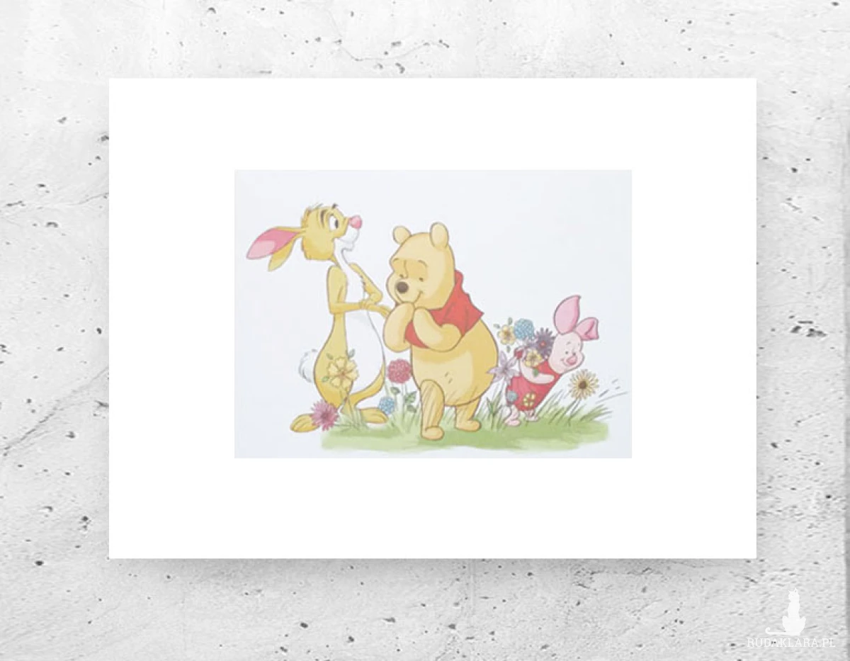 Nowy, kolorowy plakat z Kubusiem Puchatkiem, Królikiem i Prosiaczkiem. Bajkowa dekoracja na ścianę do dziecięcego pokoju, kuchni, jadalni, żłobka, przedszkola, bawialni, klubu malucha itp. Grafika na białym kartoniku w rozmiarze A4. Poster wystarczy dać do ramki w lub antyramy. Poster będzie pasował do każdego stylu urządzania wnętrz.