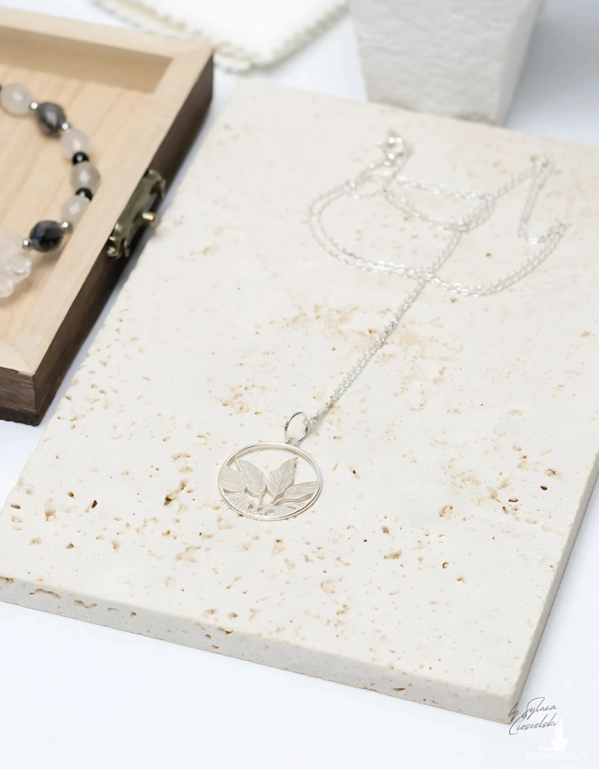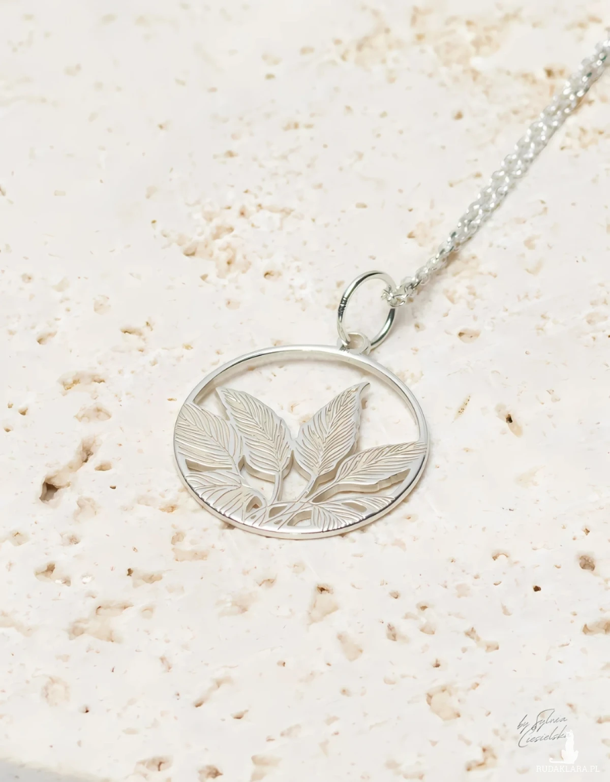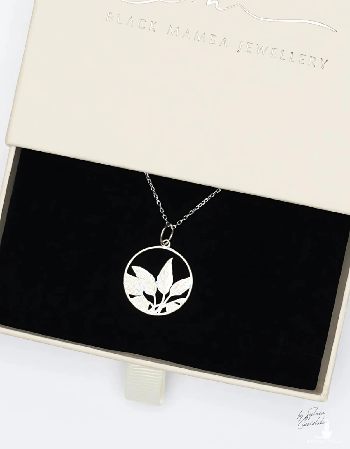 Zawieszka inspirowana liśćmi nie jest tylko ozdobą – to symbol cykliczności życia, odrodzenia i równowagi. Ażurowa forma czyni ją lekką jak piórko, a srebro próby 925 dodaje blasku, który odbija światło w magiczny sposób. Ten naszyjnik harmonizuje z duszą osoby wrażliwej, uważnej, głęboko związanej z naturą.