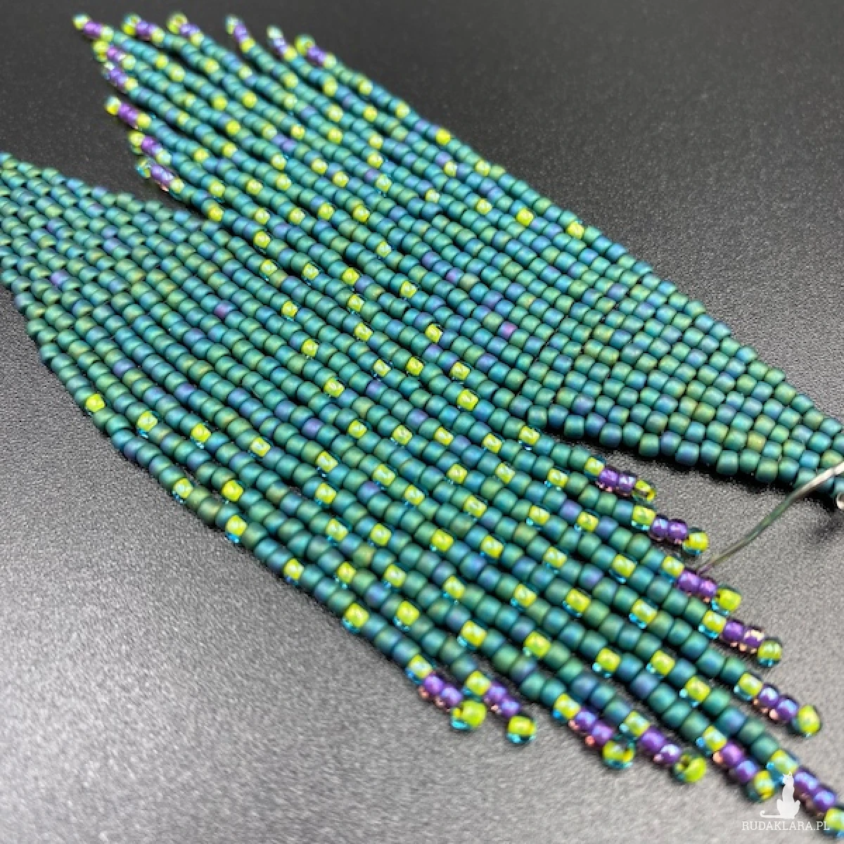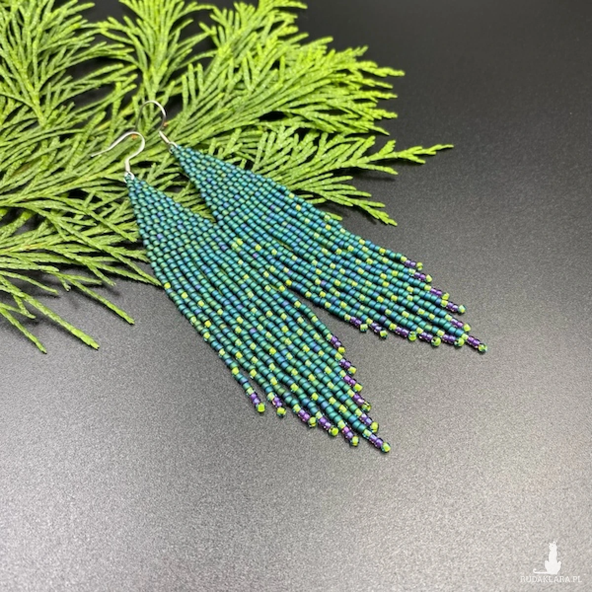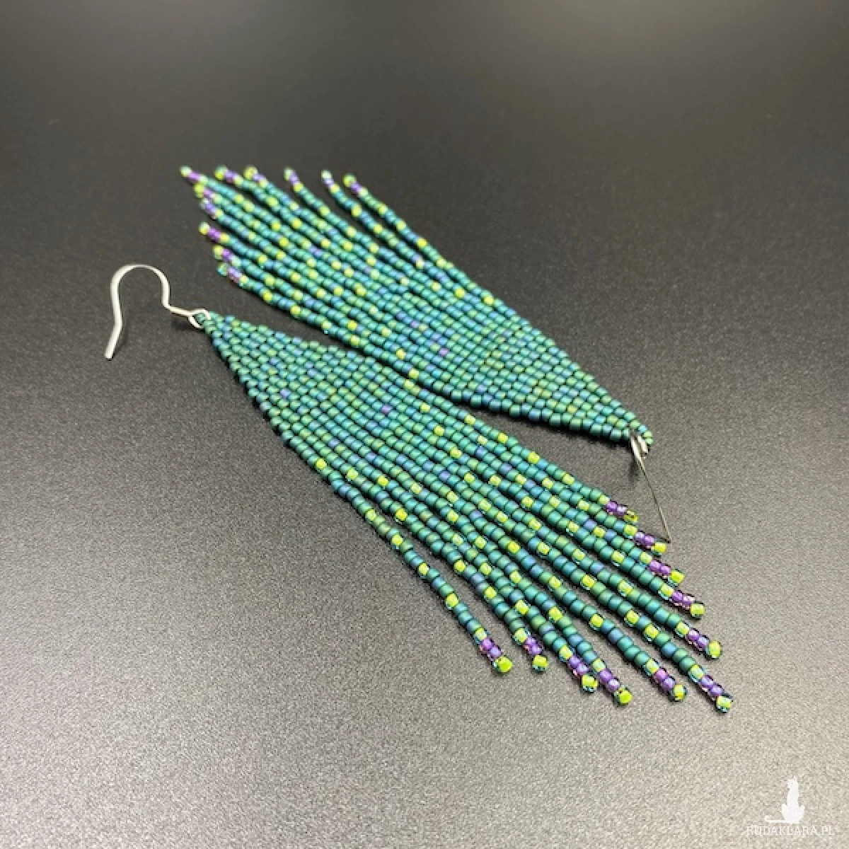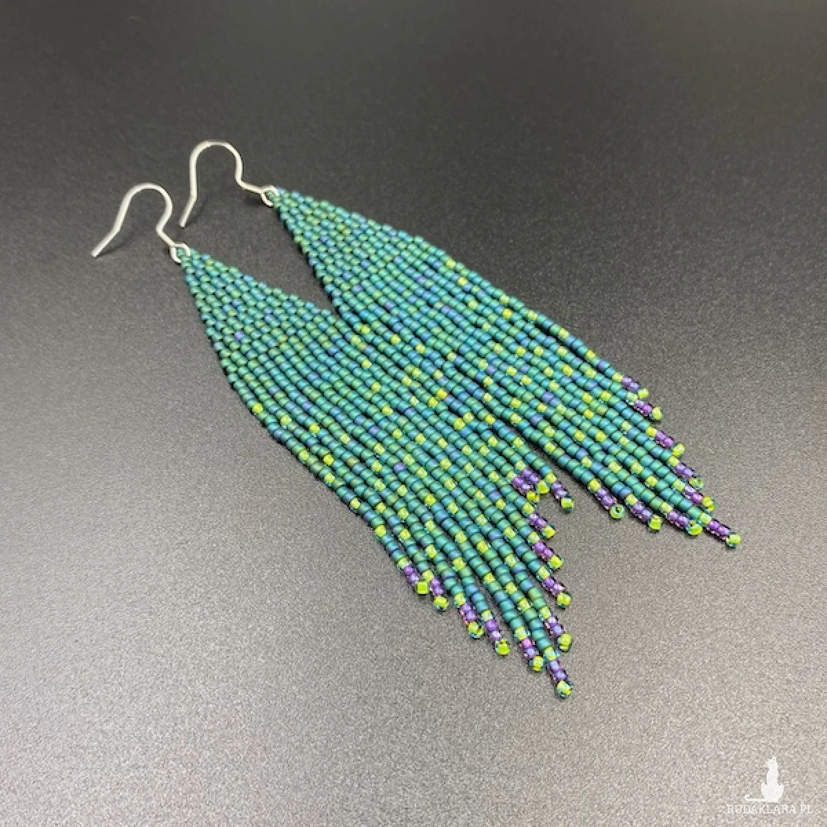 Kolory kolczyków: morska zieleń, jasna zieleń, fioletowy.