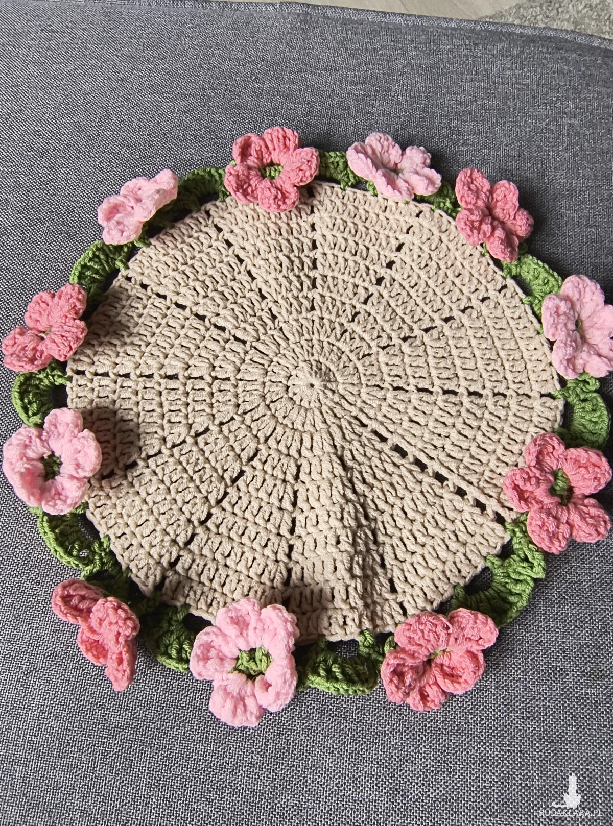 Serwetka o średnicy 25 cm, ale po złożeniu piękny, kolorowy mini bukiet z 511 ręcznie robionych kwiatków. Całość robiona szydełkiem. Piękny niepowtarzalny prezent lub ozdoba w domu.