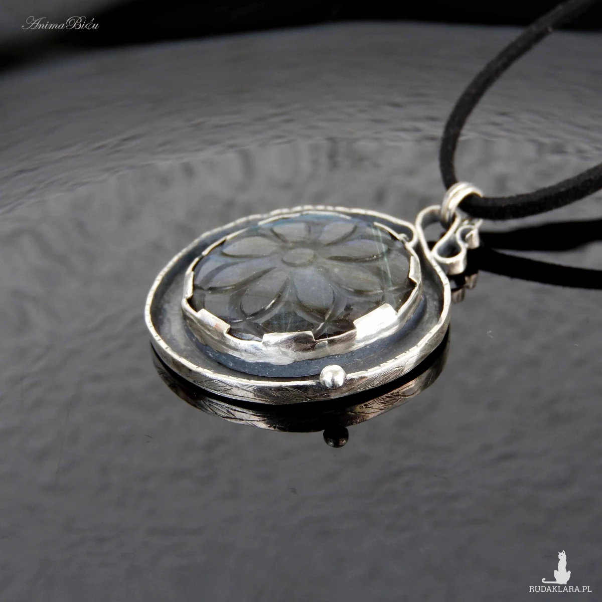 Wisiorek srebrny z labradorytem. Piękny, madagaskarski