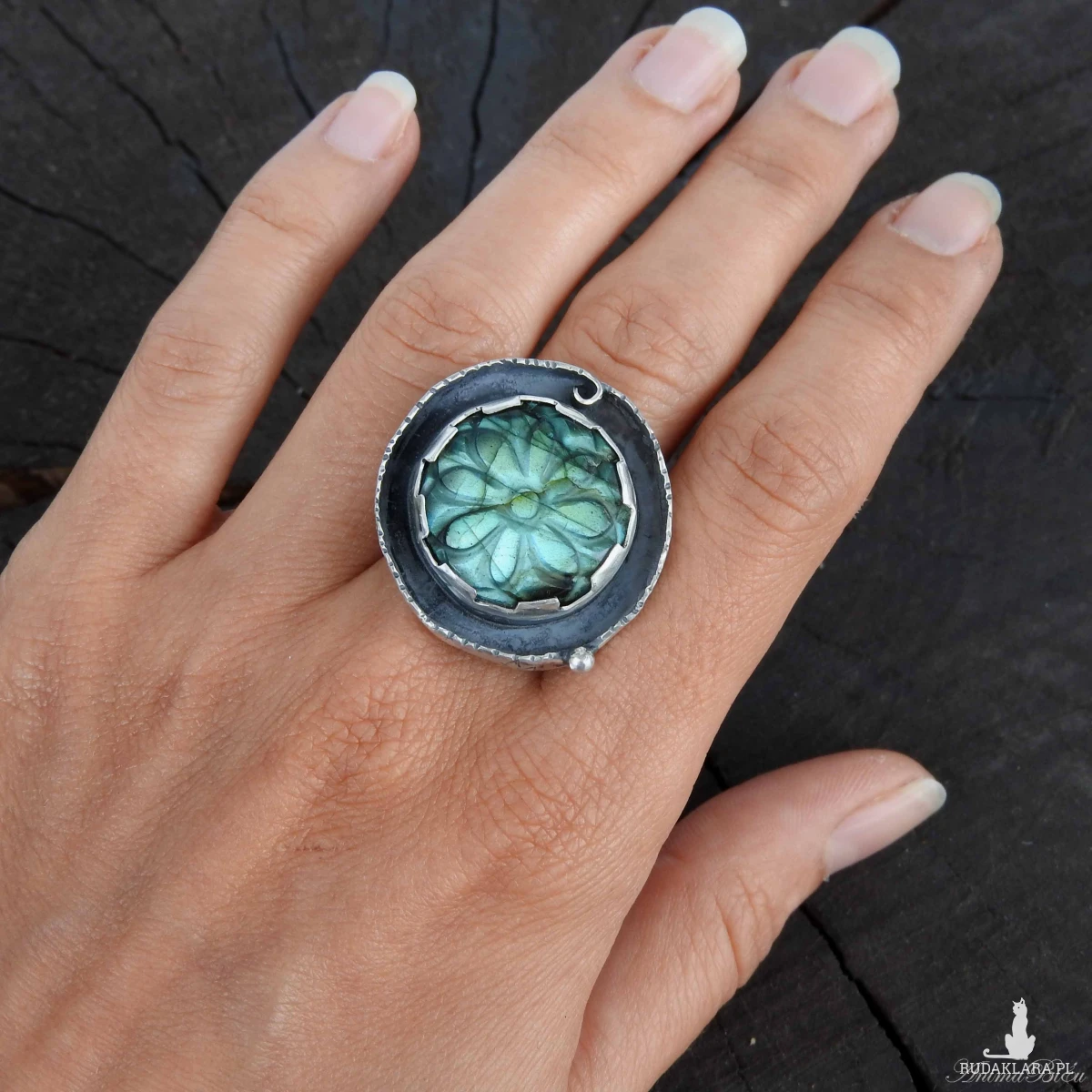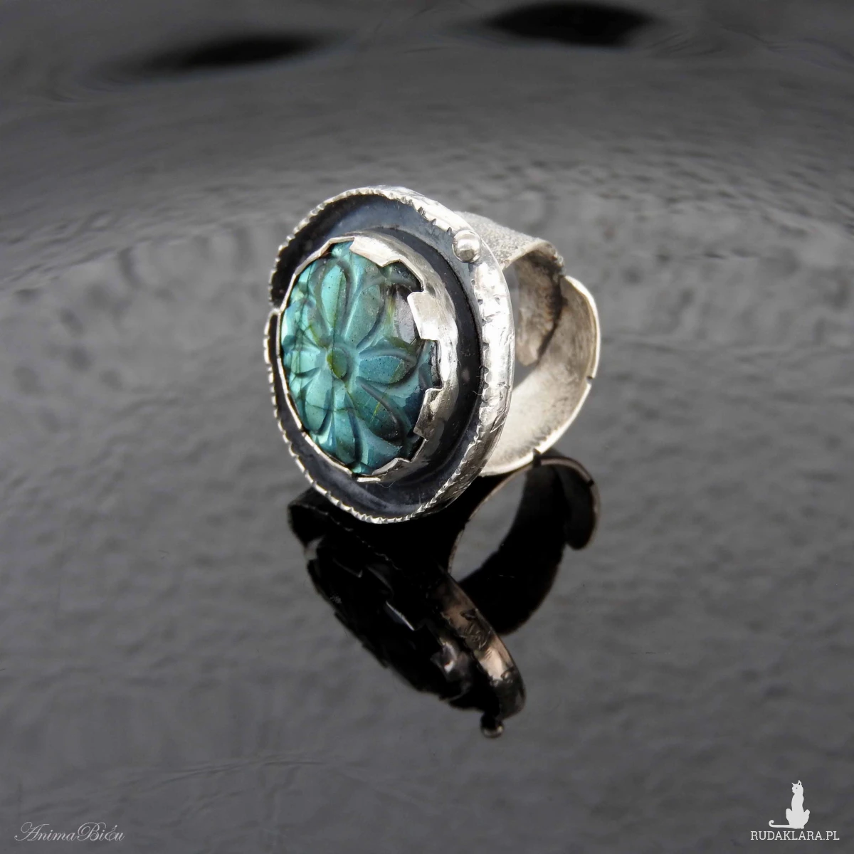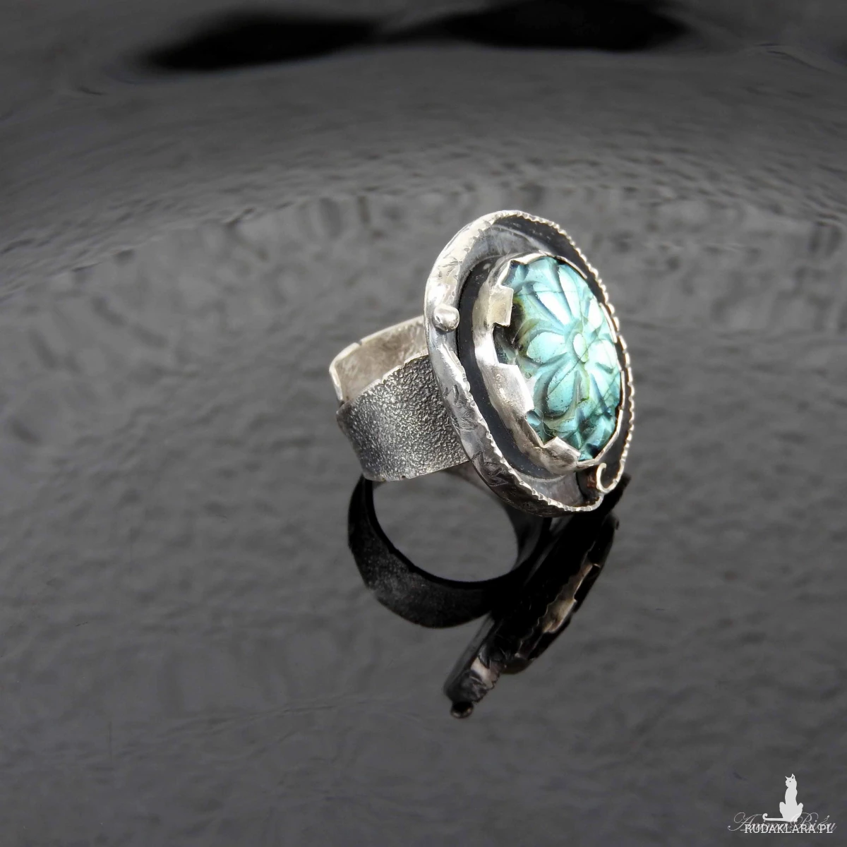 oprawiłam ręcznie w srebro próby 925 i 999, tworząc tajemniczy pierścień o