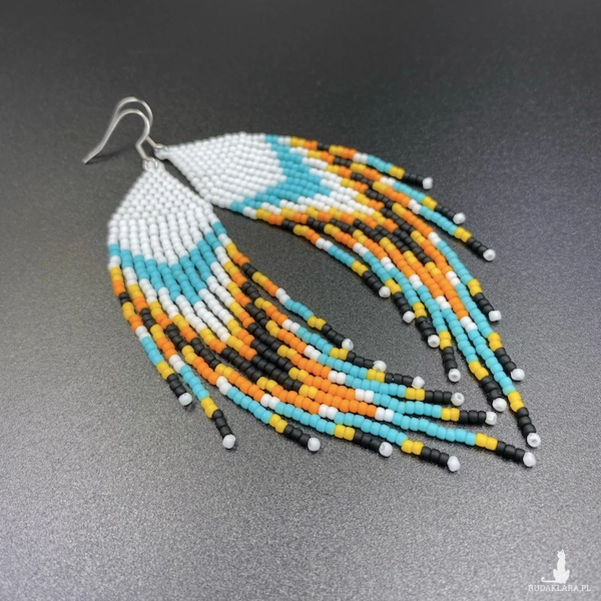 Etniczne kolczyki zostały w 100% utkane ręcznie z koralików TOHO 11. Każdą pracę wykonuję bardzo starannie.