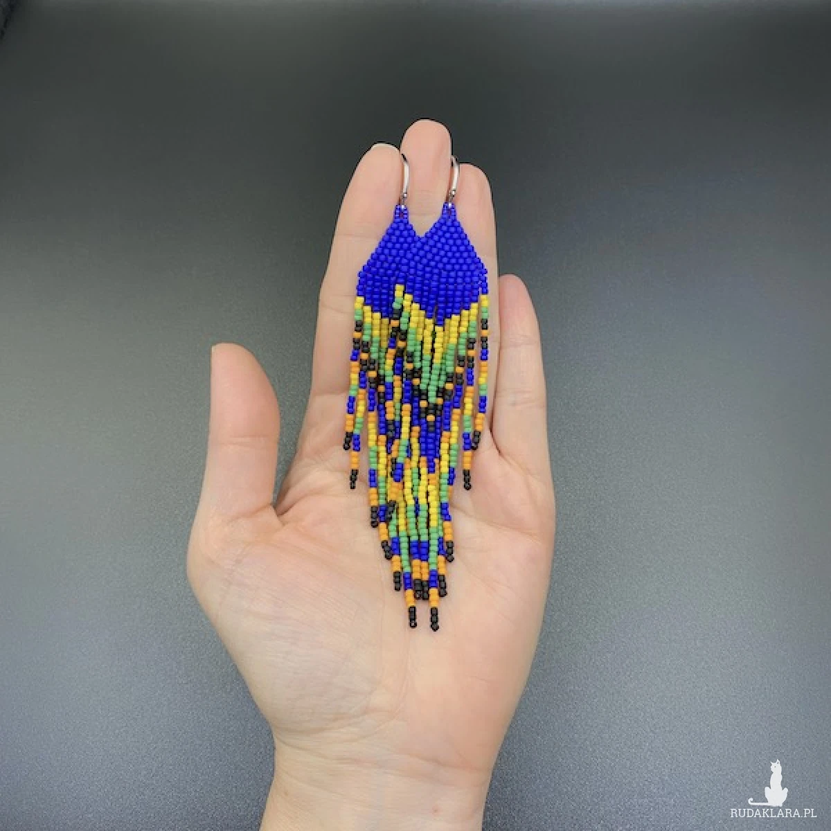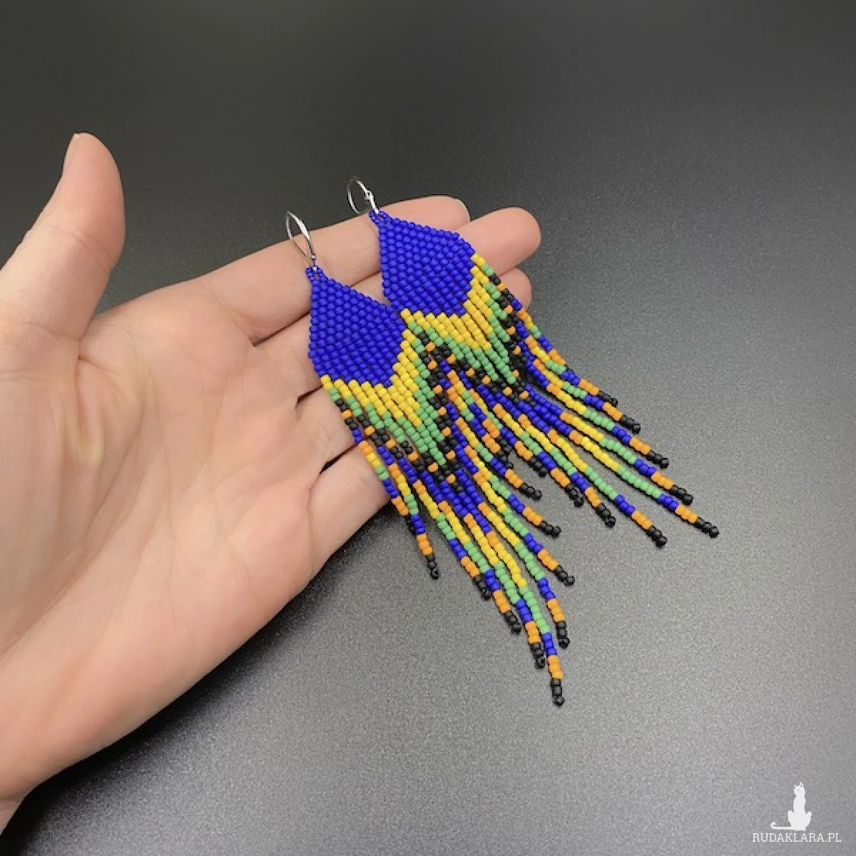 Etniczne kolczyki zostały w 100% utkane ręcznie z koralików TOHO 11. Każdą pracę wykonuję bardzo starannie.