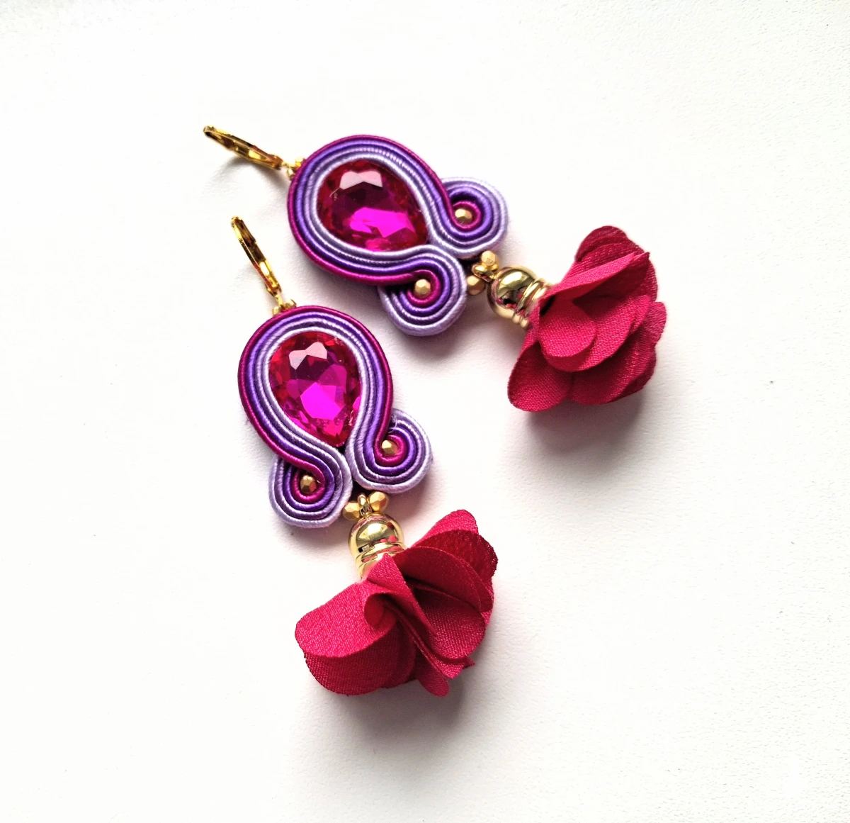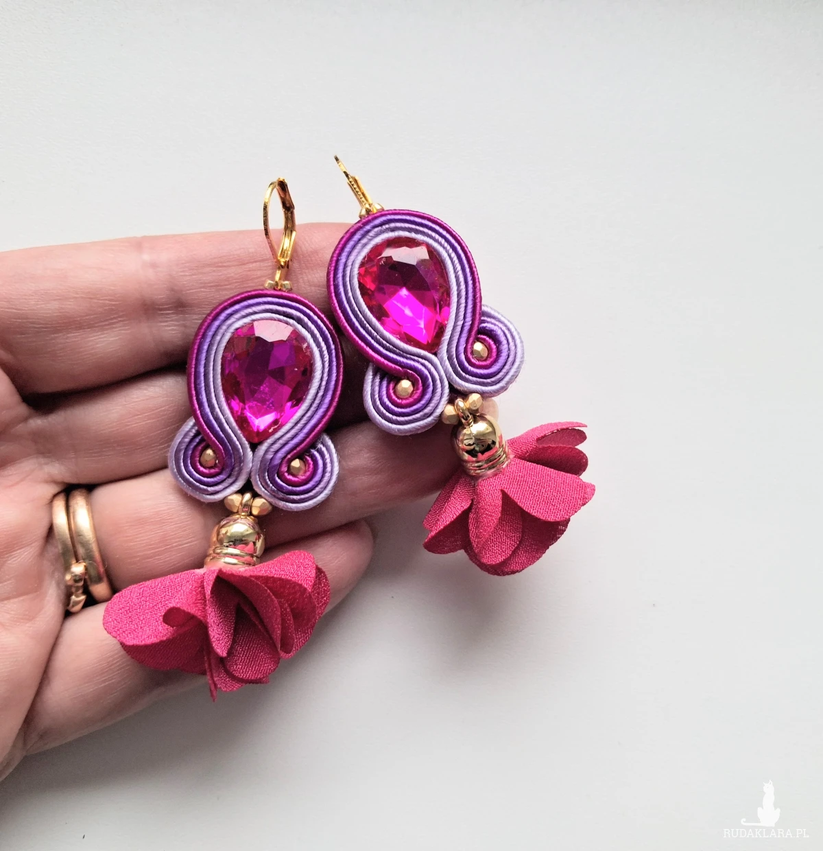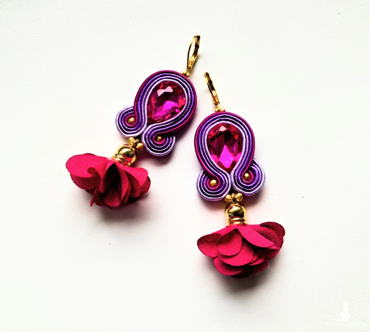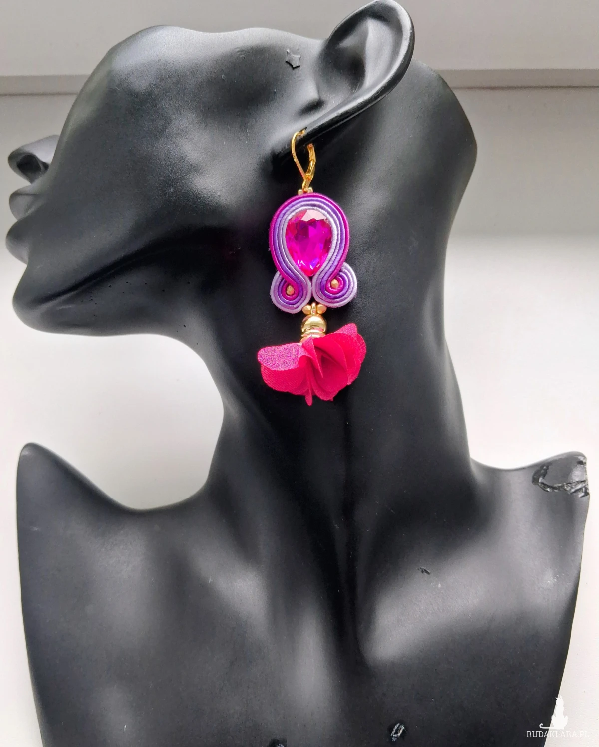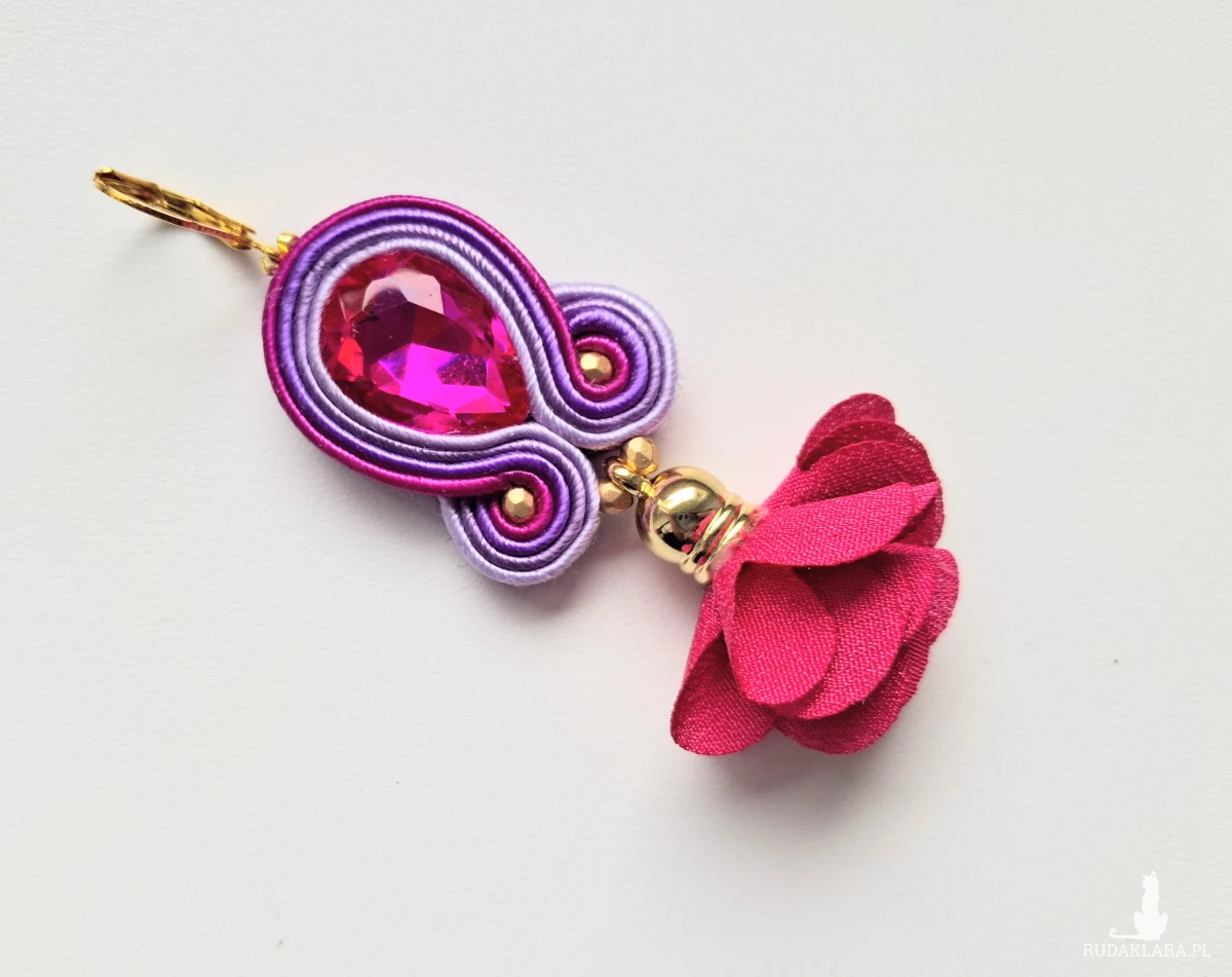 Materiał: sutasz, kwiat satynowy, koraliki Fire Polish, kryształ szlifowany.