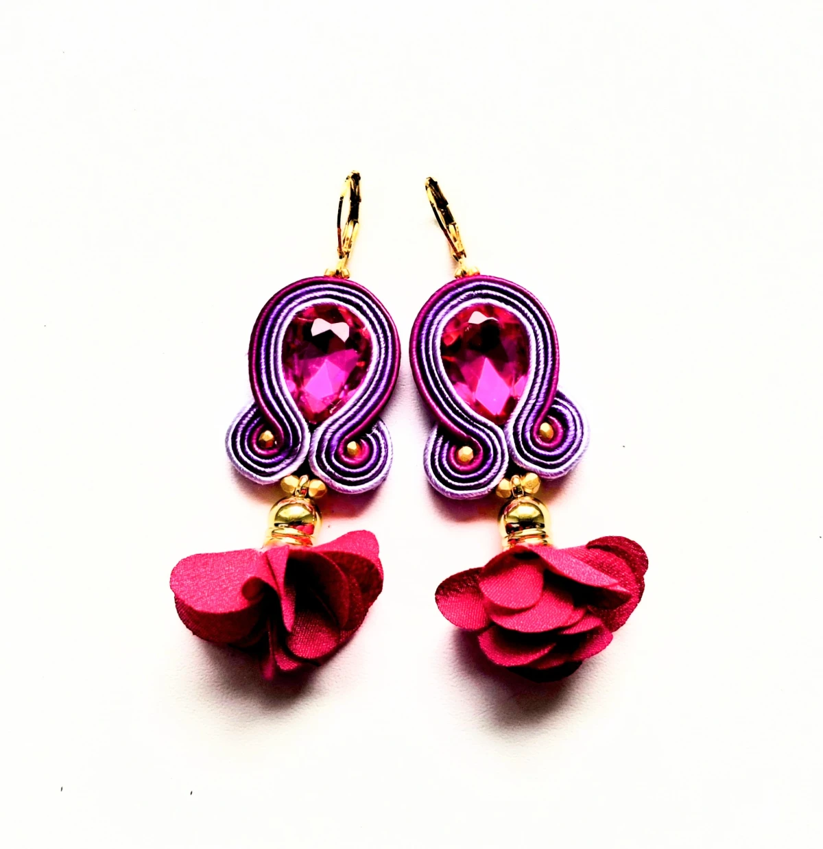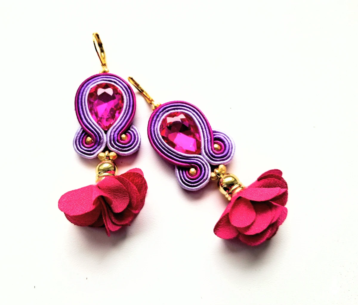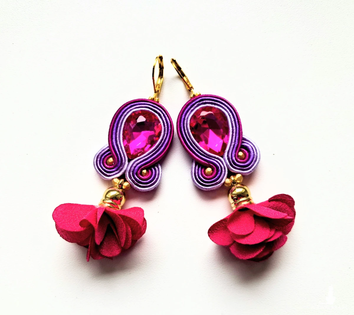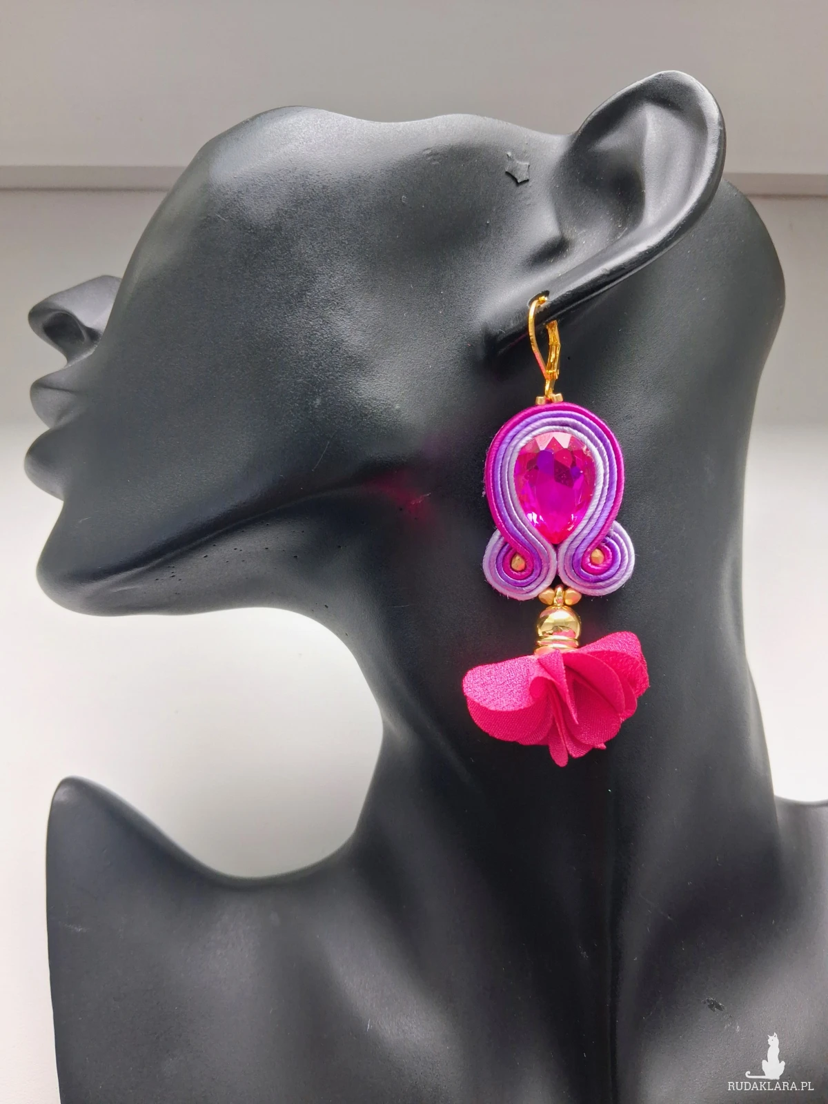 Materiał: sutasz, kwiat satynowy, koraliki Fire Polish, kryształ szlifowany.