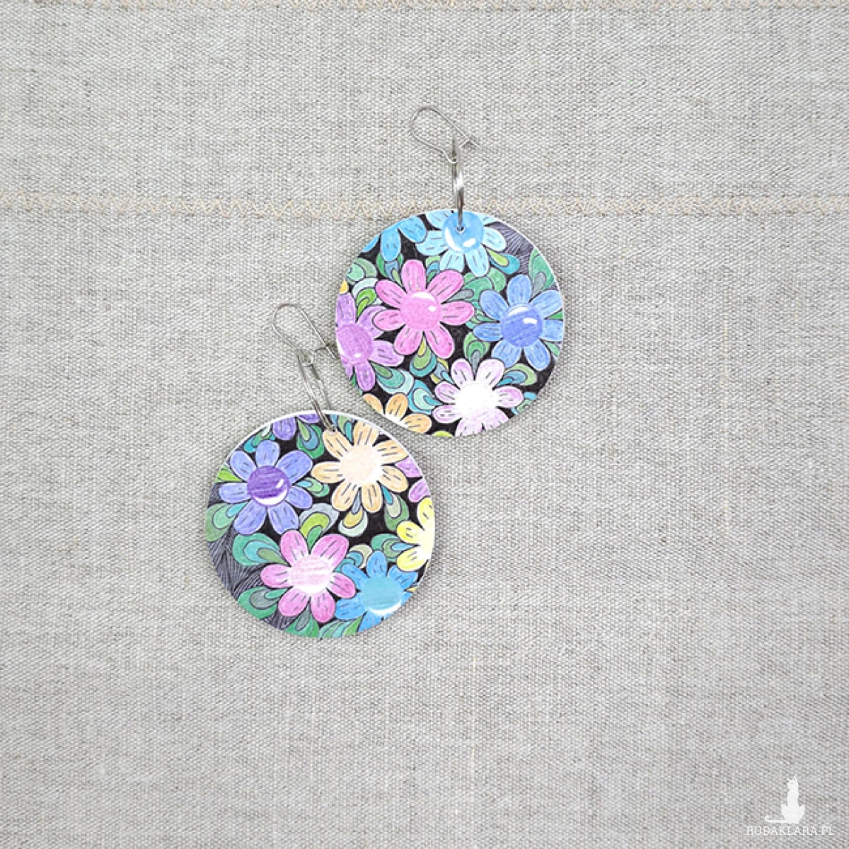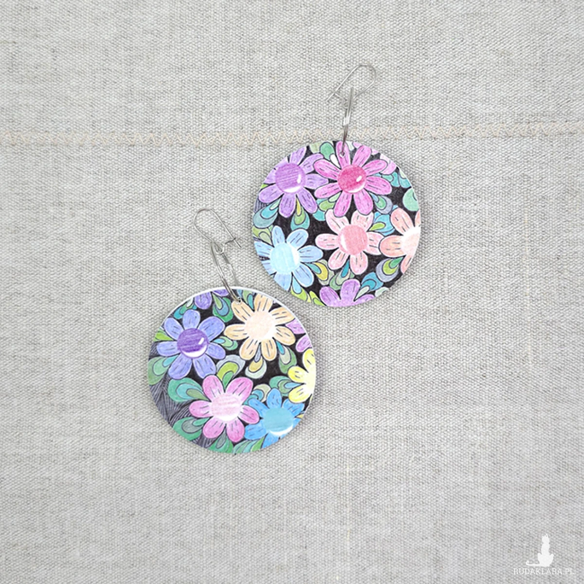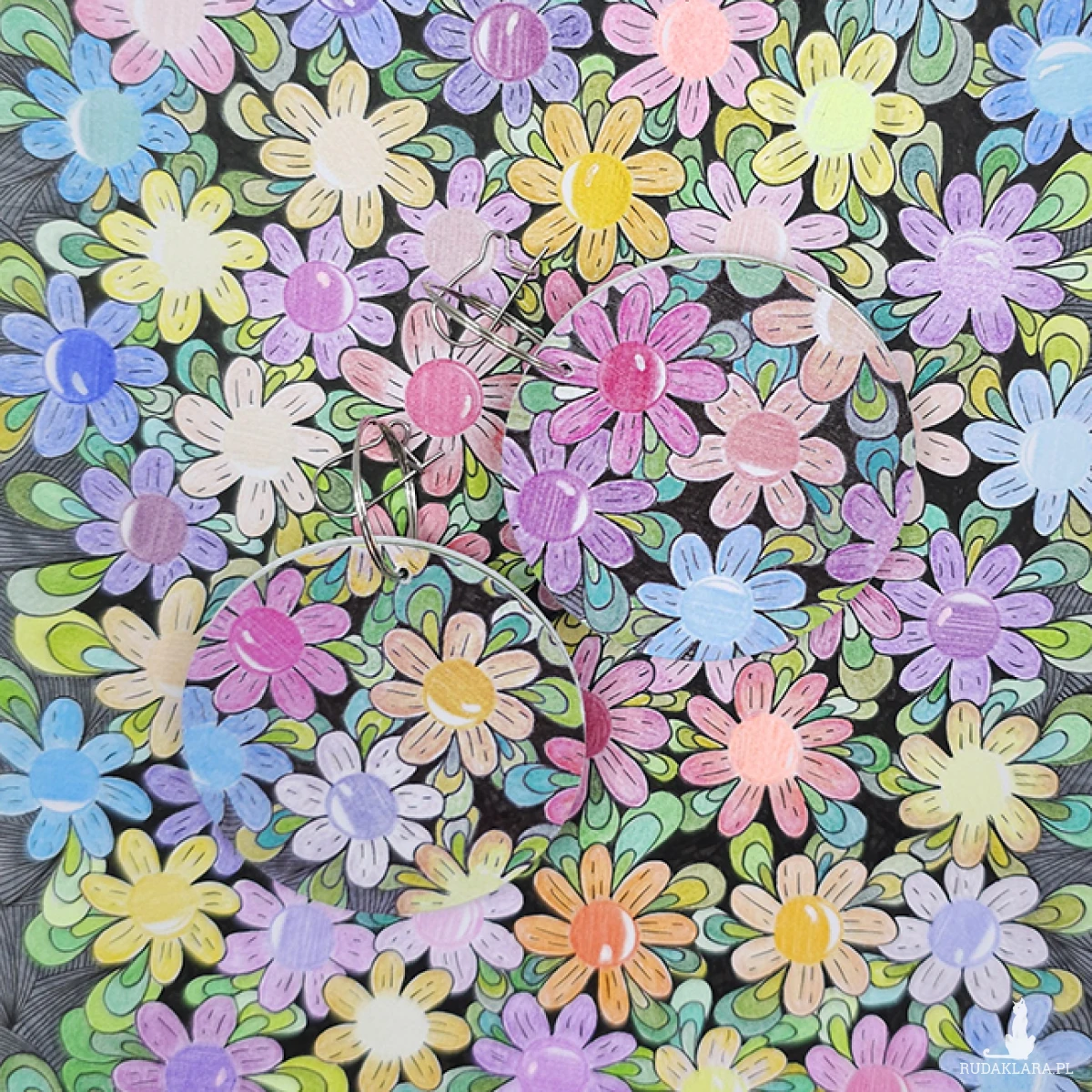 Wykonane z drewnianej bazy, na której uwieczniłam fragment mojego rysunku "Straszne stokrotki".