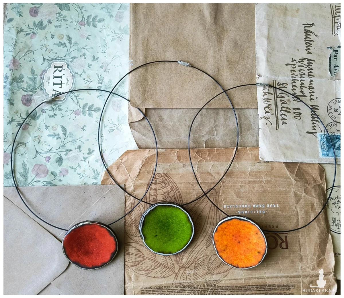 Naszyjniki ceramiczne, wykonane z gliny szamotowej, wypalone na na biskwit a następnie szkliwione w temperaturze 1260 stopni C o średnicy - 4 cm. Polecam Paniom poszukującym nietuzinkowej biżuterii. Serdecznie polecam!