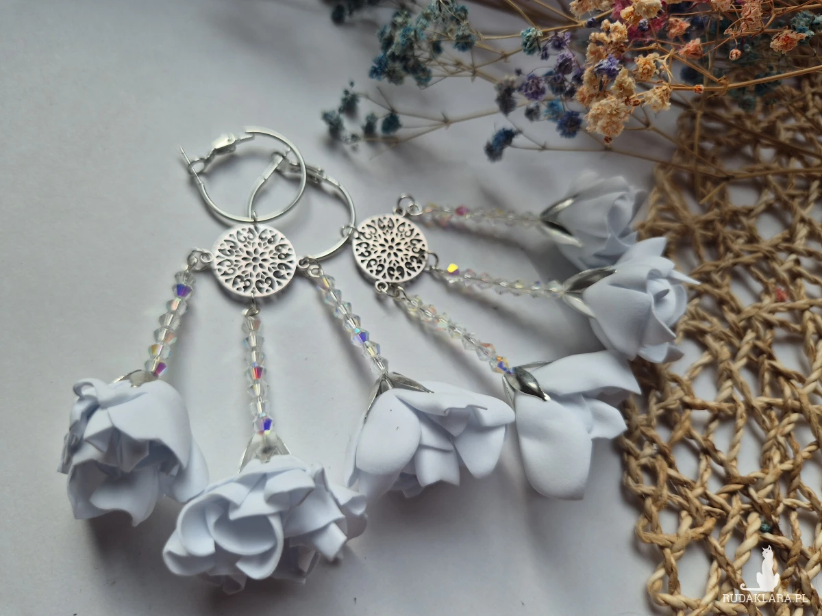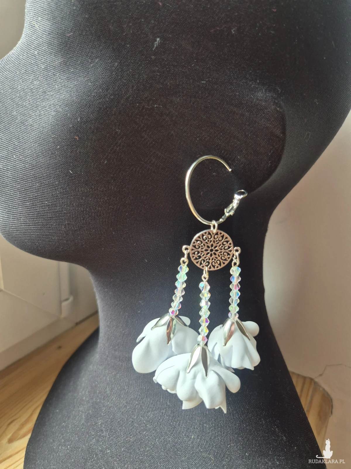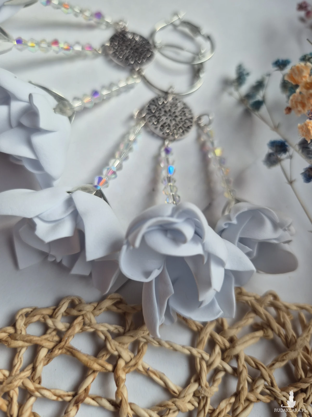 Kolczyki białe z koralikami duże mogą być ślubne wykonane w pojedynczym  egzemplarzu polecam