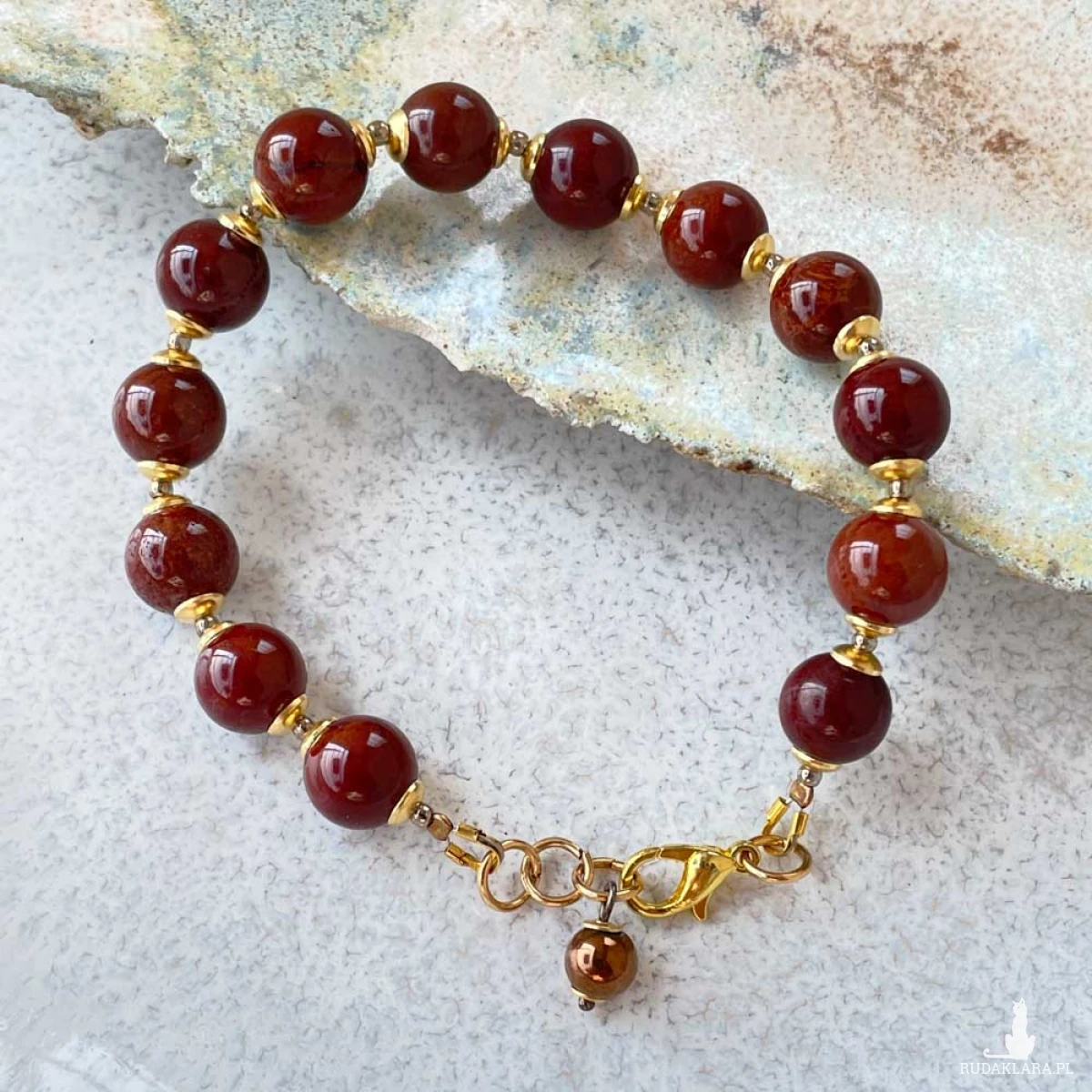 Bransoletka wykonana z brązowego turkusu o wielkości kamieni 10 mm, wykończona pozłacanymi elementami ze stali chirurgicznej. Między kamieniami znajdują się subtelne koraliki Toho, które dodają elegancji i delikatności. Bransoletka łączy w sobie naturalne piękno kamieni z nowoczesnym designem. Sprawdzi się nie tylko jako dodatek, ale również jako prezent dla bliskiej osoby.