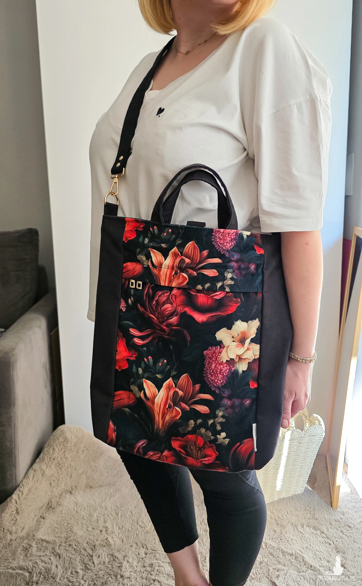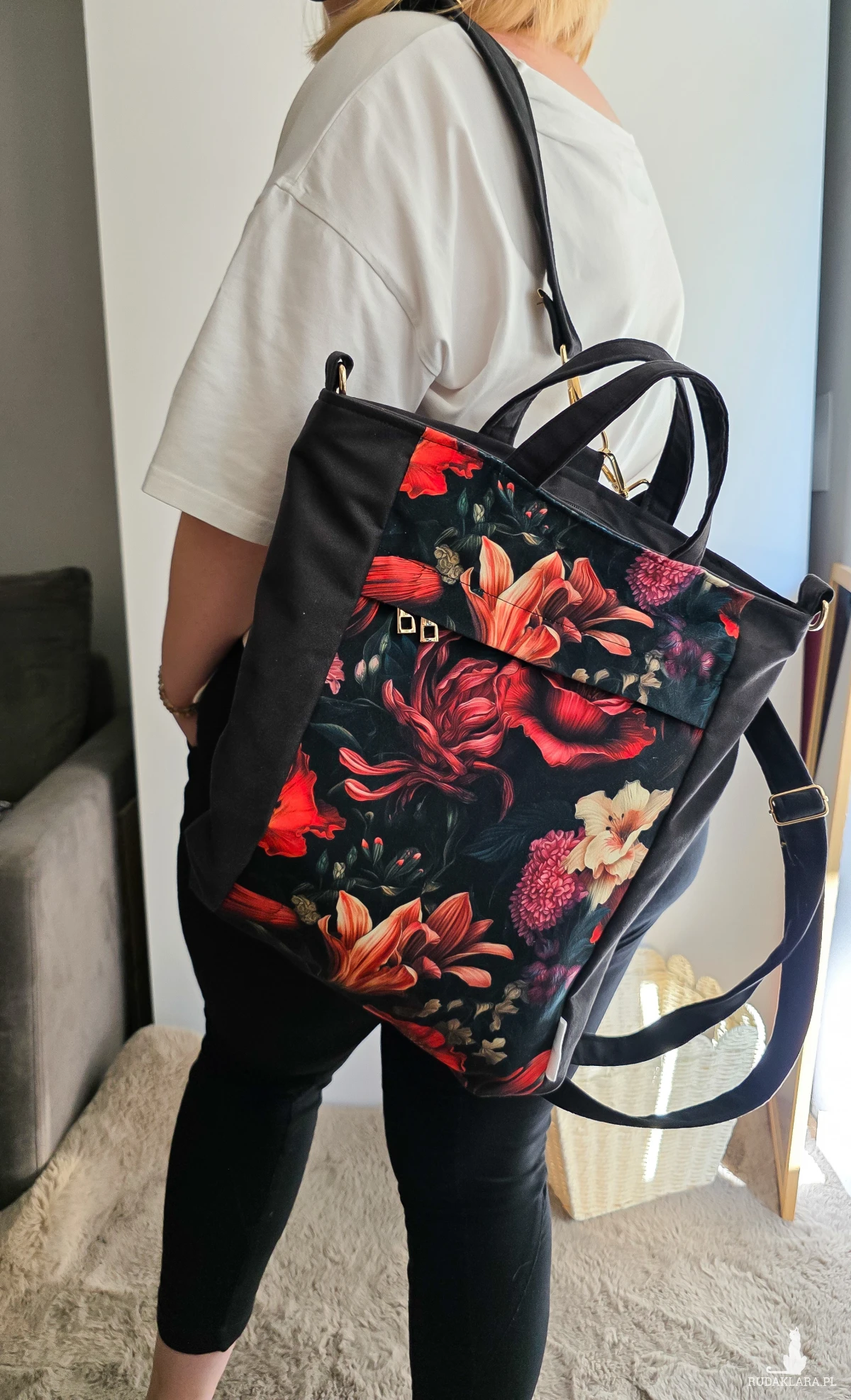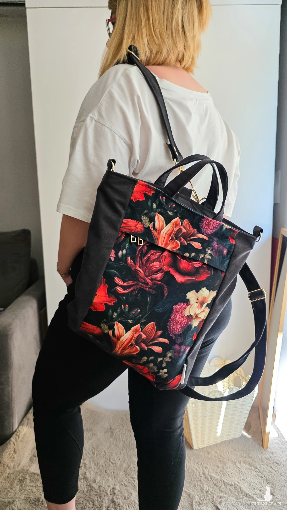 Torebko-plecak 2w1 z doczepianymi szelkami - kiedy chcesz doczepiasz dołączone do zestawu szelki i nosisz na plecach, a kiedy chcesz możesz też doczepić 1 pasek i nosić jak torebkę.