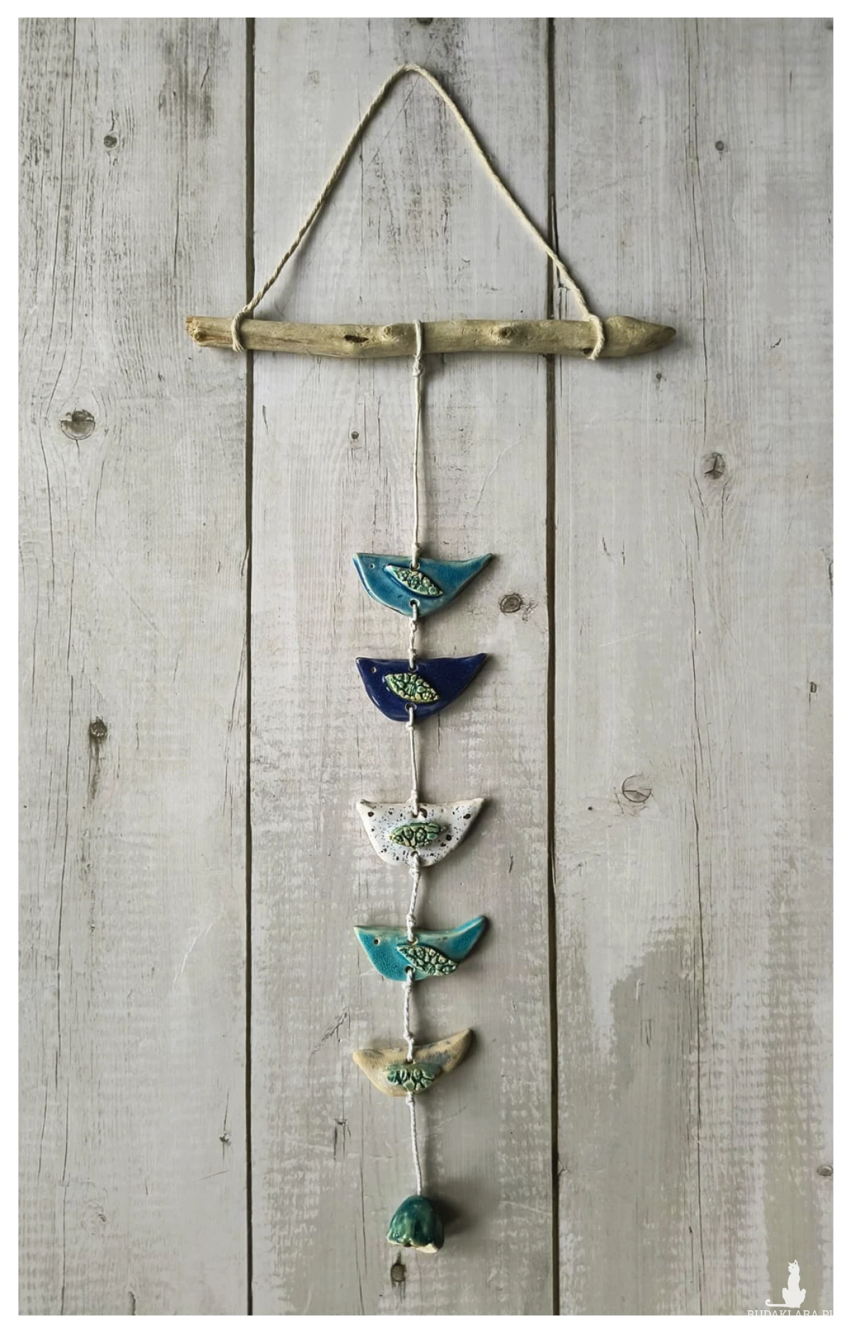 Kompozycja na drewnie z ptaszkami ceramicznymi na ścianę o długości ok 33 cm x 60 cm. Kształt drewna może nieznacznie różnić się od tego ze zdjęcia. Polecam serdecznie.