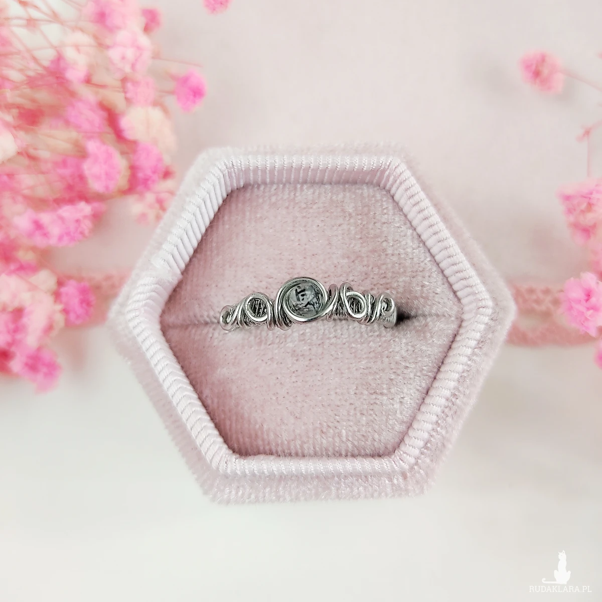 Pierścionek Kwarc Turmalinowy ręcznie robiony. Wykonany techniką wire wrapping z drutów ze stali chirurgicznej.