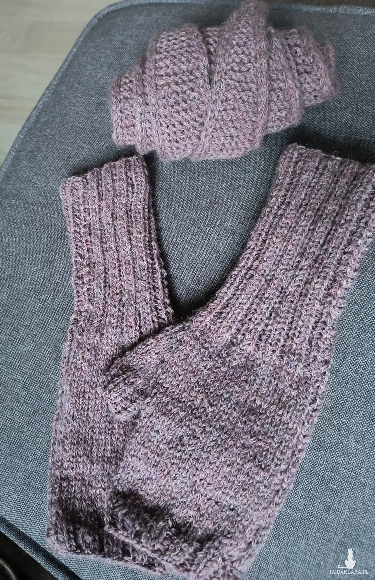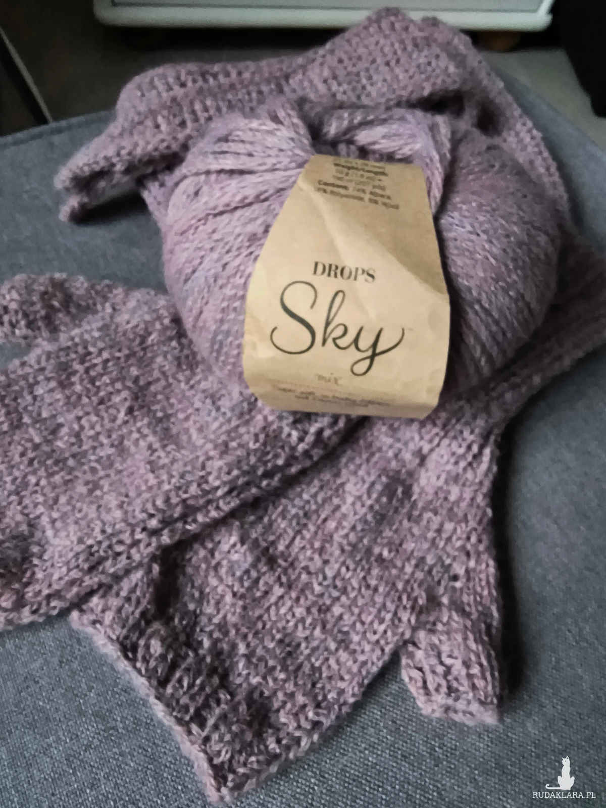 Piękny komplet na jesień. Szaliczek i mitenki z włóczki drops sky. Skład na zdjęciu. Ręcznie robione na drutach.