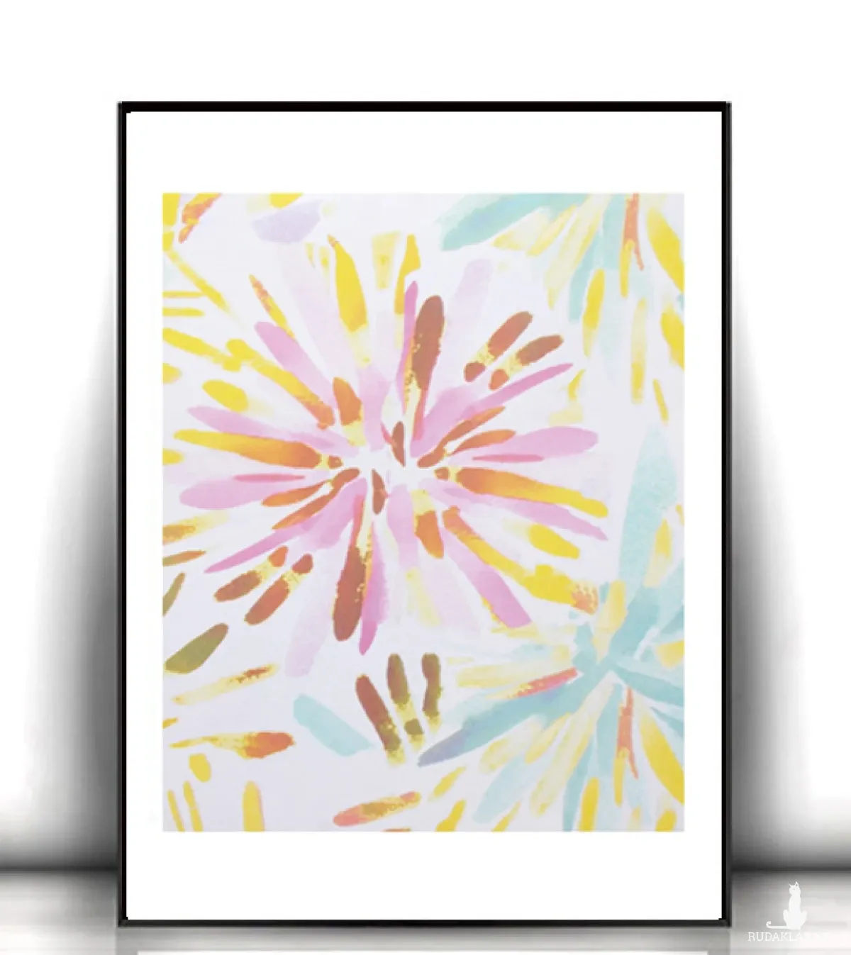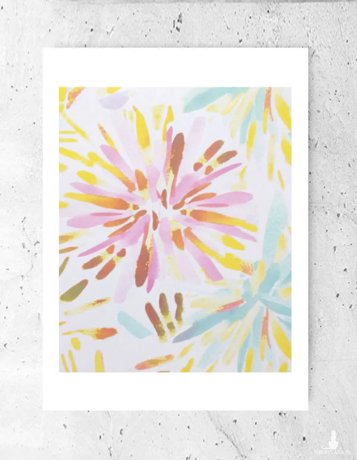 Nowy, kolorowy plakat z kwiatami. Grafika na białym kartoniku w rozmiarze A4. Dekoracja na ścianę do sypialni, salonu, kuchni, jadalni, pokoju dziewczynki lub nastolatki, biura, gabinetu, kawiarni, cukierni, restauracji itp. Poster wystarczy dać do ramki 21x30 cm. Plakat będzie pasował do każdego stylu urządzania wnętrz.