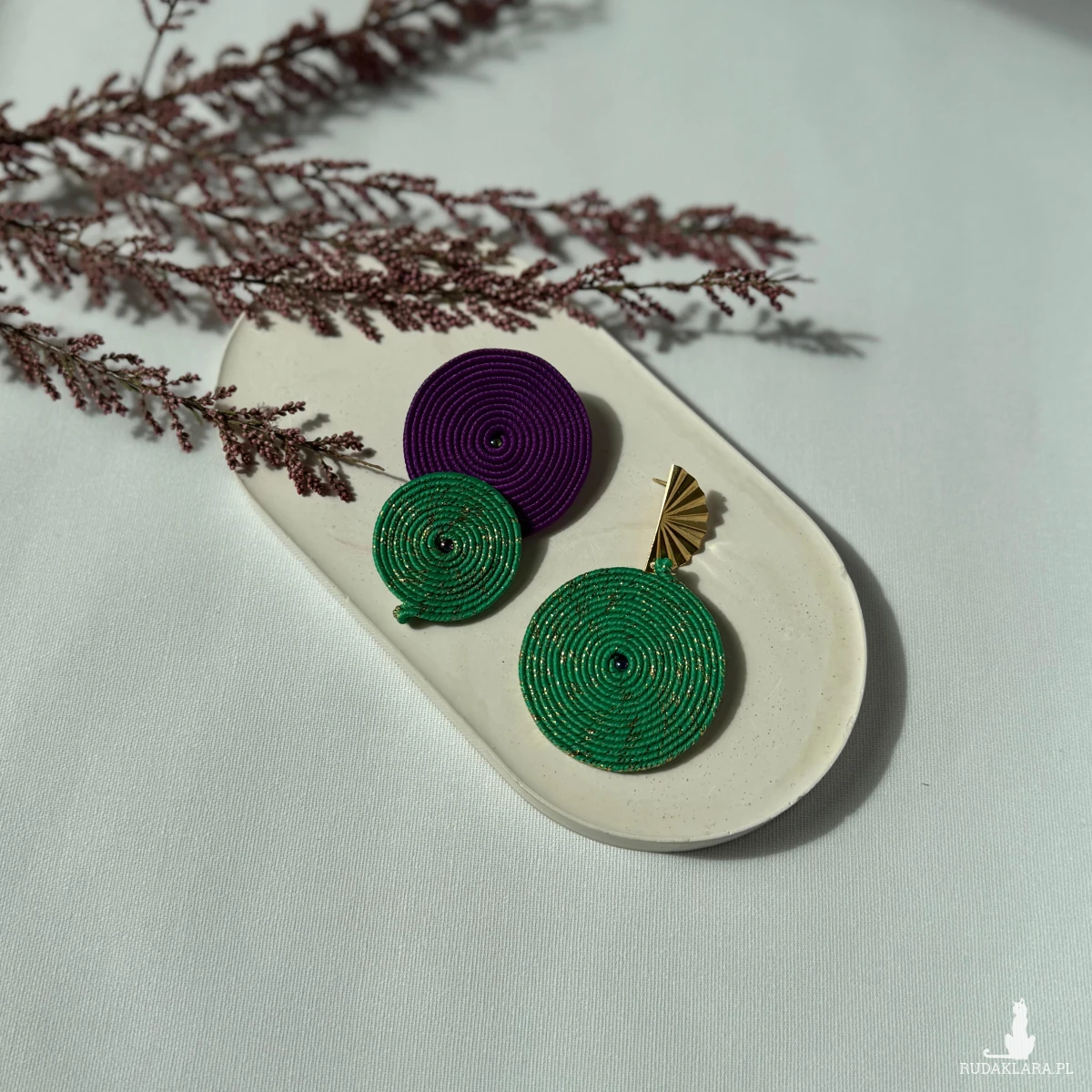 *Kolczyki w kolorze soczystego fioletu i zieleni ze złotem