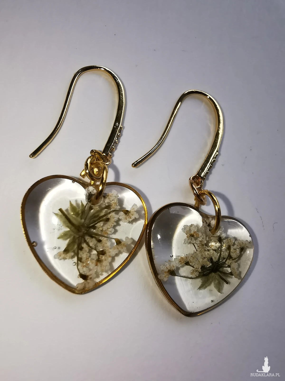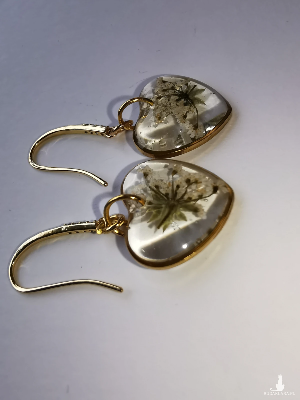 Drobne, eleganckie, lekkie kolczyki z żywicy i prawdziwych suszonych kwiatów dzikiej marchwi.