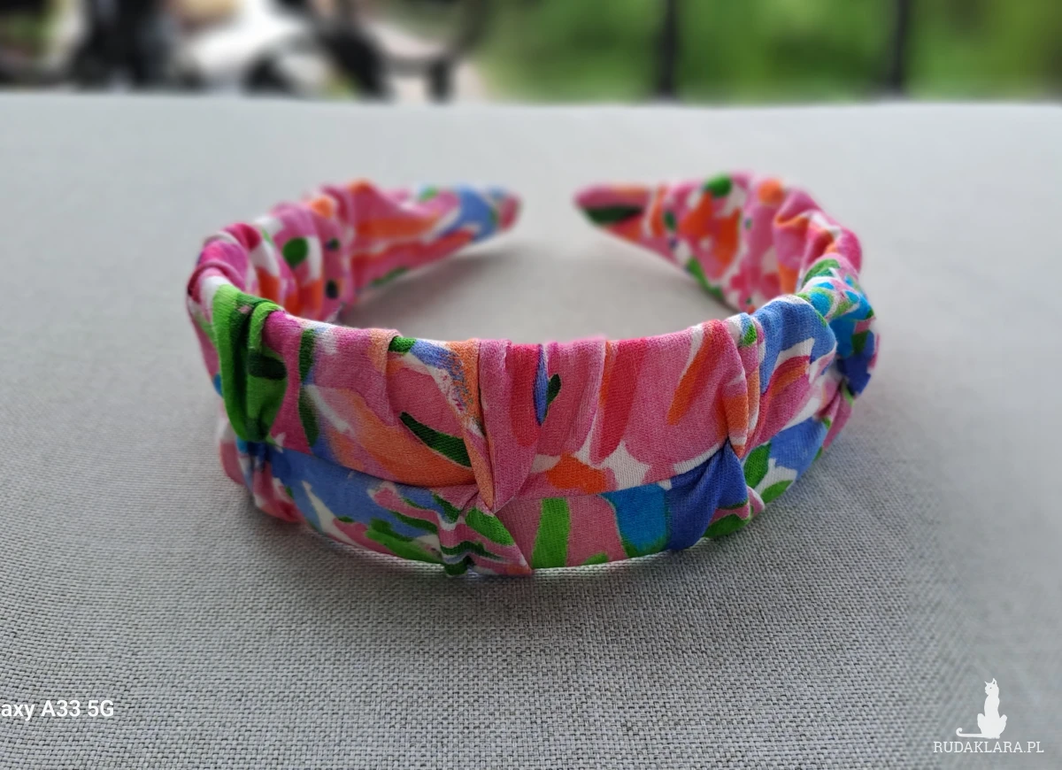 Opaska ma szerokość ok.4,5cm. Ma elastyczną bazę. Taka opaska to świetne uzupełnienie codziennej stylizacji.