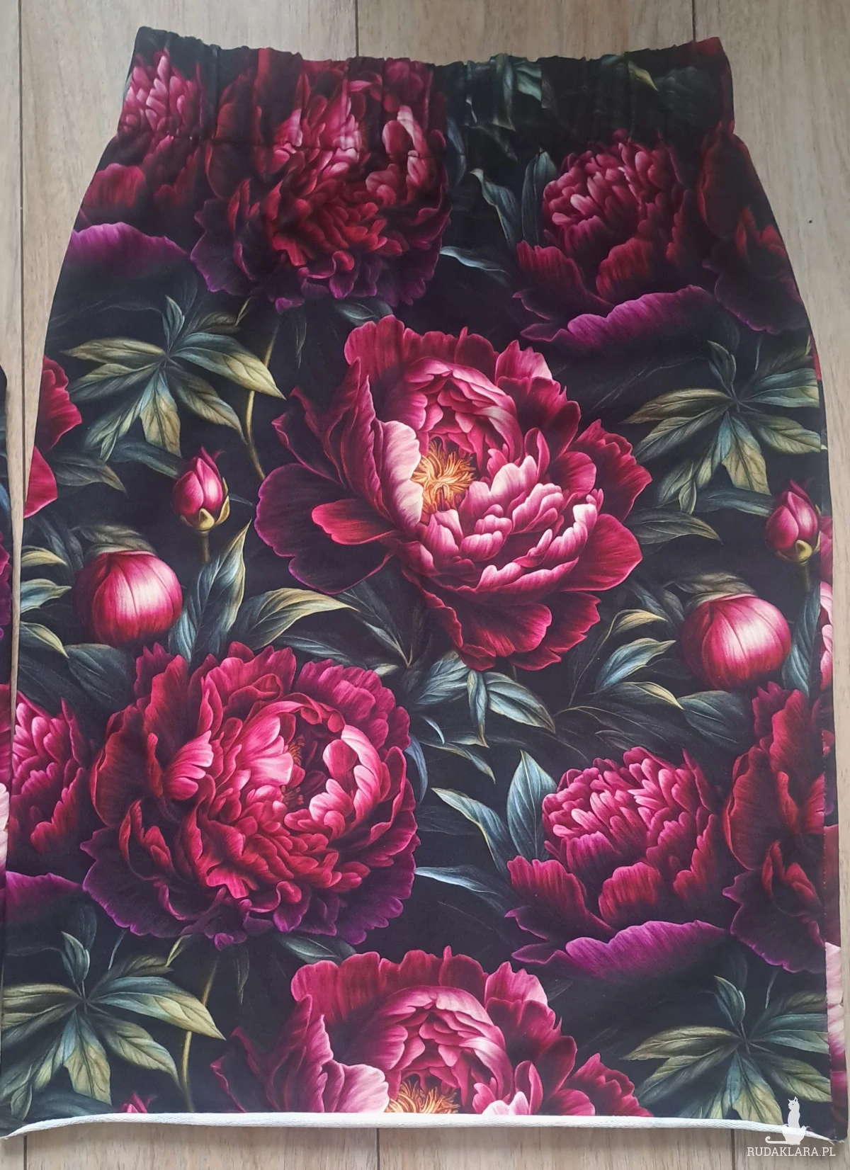 Spódniczka jest uszyta z dresówki pętelki. Bluzka z jerseyu. Piękne żywe kolorowe kwiaty w realu wyglądają obłędnie.